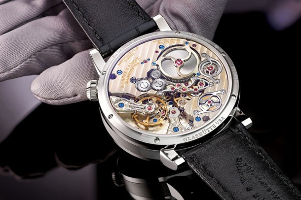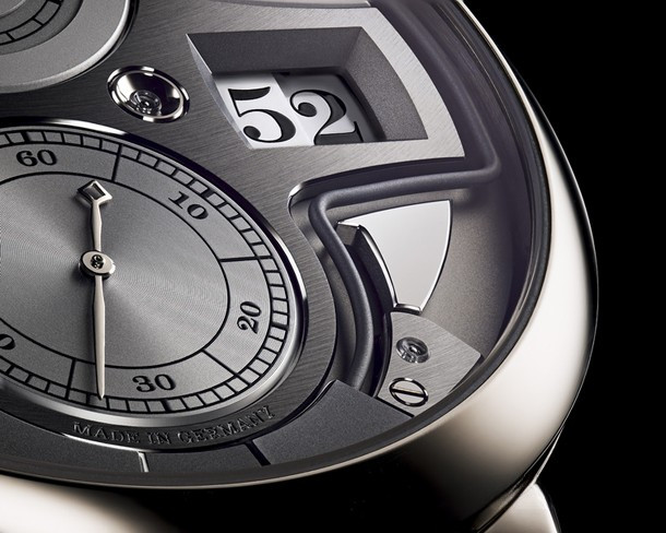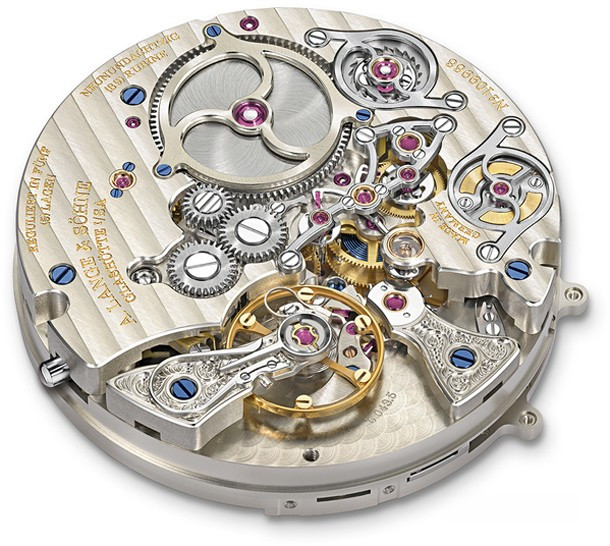 Круглый полированный корпус новинки изготовлен из платины, диаметром 44,2 мм, толщиной 14,1 мм. На торце рифленой заводной головки, расположенной на на 2 часах, выгравирован логотип бренда A. Lange & Söhn. Пушер для запуска репетира размещен на 10 часах. Сапфировое стекло установлено на передней стороне часового корпуса и на его задней крышке. Циферблат родированный серебряный, выполненный в "технократичном" стиле. Модель оснащена мануфактурным немецким механизмом с ручным заводом A. Lange & Söhne L043.5, созданный в соответствии со всеми требованиями стандартов качества бренда, собранным, отделанным и декорированным вручную, отрегулированным в пяти позициях, состоящем из 771 детали, диаметром 37,7 мм, толщиной 10,9 мм, с трехчетвертной платиной, гравированным вручную балансовым мостом, на 93 камнях (в том числе три - на винтовых золотых шатонах), с балансовой частотой 18000 полуколебаний в час (2,5 гц), запасом хода 36 часов (при этом, запуск репетира возможен лишь, если запас хода не меньше двенадцати часов; на шкале указателя запаса хода этот уровень отмечен красной точкой), функциями индикации часов, минут (посредством цифровых указателей в глубоких апертурах, расположенных, соответственно, на 9 и 3 часах), секунд (на малом боковом циферблате, расположенном на 6 часах), запаса хода (посредством соответствующего аналогового указателя, расположенного на 12 часах), а также с минутным репетиром, отбивающий часы (ударами низкого тона), десятиминутные интервалы (двойными ударами) и минуты (ударами высокого тона). Молоточки репетира расположены на поверхности циферблата на 4 и 8 часах. Калибр отменно отделан и декорирован. Поставляется на черном ремешке из кожи аллигатора с платиновой застежкой.