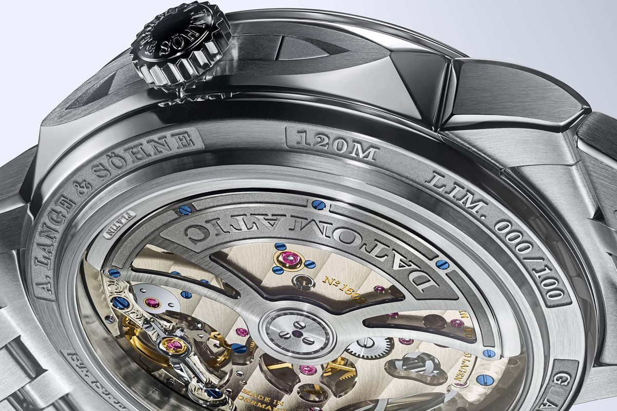 Часы A. Lange and Sohne Odysseus Chronograph представлены в корпусе размером 42.5 х 14.2 мм из нержавеющей стали водонепроницаемостью 120 метров. Внутри корпуса установлен автоматический механизм, Калибр Lange L156.1, обладающий запасом хода 50 часов. На черном циферблате отображаются часы, минуты, секунды, дата, день недели. Часы поставляются на браслете из нержавеющей стали. Серия ограничена - 100 шт.
