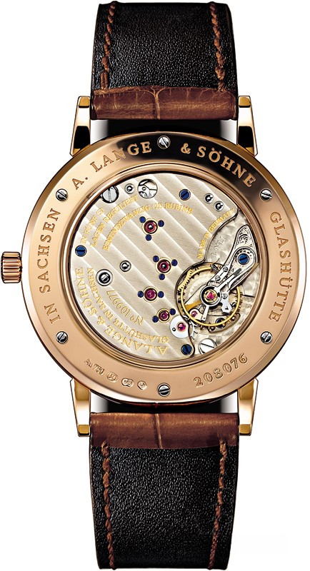 Диаметр часов Saxonia с надёжным мануфактурным Калибром L941.1 составляет 35,0 мм. Корпус изготовлен из розового золота 18к. На серебристом циферблате отображаются часы, минуты и секунды. Часы и минуты определяются при помощи центральных мечевидных стрелок, малая секундная стрелка находится на 6-ти часах. Часы комплектуются коричневым ремешком из кожи аллигатора с застежкой из розового золота 18к. Запас хода механизма с ручным заводом составляет 45 часов.