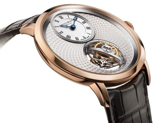 Корпус у новинки круглый полированный, изготовленный из 18-каратного розового золота, диаметром 42 мм, толщиной 8.34 мм, водонепроницаемый до 30 метров. Рифленая заводная головка расположена на 3 часах. Сапфировое стекло установлено на лицевой стороне часового корпуса (выпуклое, с двусторонним антибликовым покрытием) и на его завинчивающейся задней крышке. Вороненые скелетонизированные часовая и минутная стрелки расположены на основном малом циферблате серебристо-белого цвета, смещенного на 12 часов, и размеченного напечатанными черными римскими цифрами. Модель оснащена мануфактурным ультратонким швейцарским механизмом с ручным заводом Arnold & Son 8200, толщиной 2,97 мм, диаметром 32 мм, на 29 камнях, с балансовой частотой 21600 полуколебаний в час (3 гц), двумя заводными барабанами, запасом хода 90 часов, функциями индикации часов, минут (посредством соответствующих вороненых стрелок на малом боковом циферблате, расположенном на 12 часах) и с парящим минутным турбийоном (диаметр его каретки составляет 14,0 мм) в круглой апертуре, расположенной на 6 часах. Калибр отменно отделан и декорирован согласно критериям Haute Horlogerie (в частности, "женевскими волнами", ручной гравировкой и полировкой). Поставляется на коричневом ремешке из кожи аллигатора с застежкой из 18-каратного розового золота. Лимитированный выпуск - 28 экземпляров.
