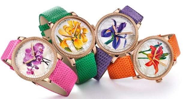 Arnold & Son объединили изысканный цветочный стиль ручной росписи с великолепным искусством часового производства. Специальная серия HM Flower от Arnold & Son создана для женщин, которые ценят качество высококлассного часового искусства с красивым дизайном. Каждая из четырех моделей серии отображает миниатюру в виде распустившегося цветка – ручную роспись, богатую глубокой гаммой цветов, подчеркивающей изысканный циферблат из белого перламутра. Эксклюзивный характер этих четырех замечательных часов заметен и в ограниченной серии в восемь единиц для каждой модели. Внутри корпуса находится мануфактурный часовой механизм A&S1001 с отделкой Haute Horlogerie. Он имеет два барабана, которые обеспечивают 90 часов запаса хода и гарантируют постоянную работу и, в свою очередь, стабильный хронометраж и больше точности. Все палеты и мосты в часовом механизме имеют вручную снятую фаску и также украшены: свидетельство векового традиционного мастерства Arnold & Son. Тираж моделей HM Flower Edition лимитирован до 8 единиц каждой версии. Безель инкрустирован бриллиантами.