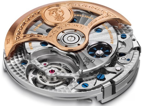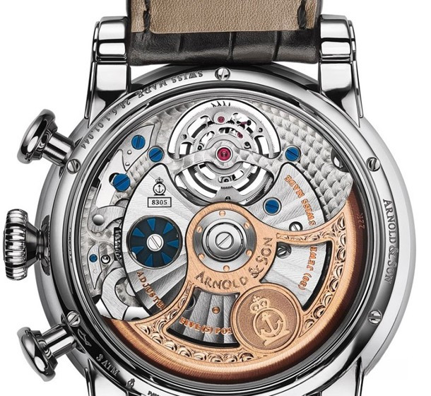 В традициях Arnold & Son Калибр A&S8305 имеет 255 компонентов, 30 камней и тщательную отделку. Каждая деталь часового механизма обработана палладием, мосты со снятыми фасками и полированными краями, изысканной круговой зернистостью и лучистыми узорами Côtes de Genève. Рычаги хронографа матированы с вручную снятой фаской, полированными краями и воронеными винтами с фаской и отполированными до зеркального блеска головками. Изюминкой часов является скелетонизированный ротор из красного золота 22к, который невероятно красив благодаря вручную выполненной тонкой работе, матированной поверхности и отполированным краям с фаской. Великолепный часовой механизм находится в превосходном палладиевом корпусе диаметром 45 мм. Тираж новой лимитированной модели TEC1 с черным гильошированным циферблатом составляет 125 единиц. Часы комплектуются черным ремешком из кожи аллигатора.
