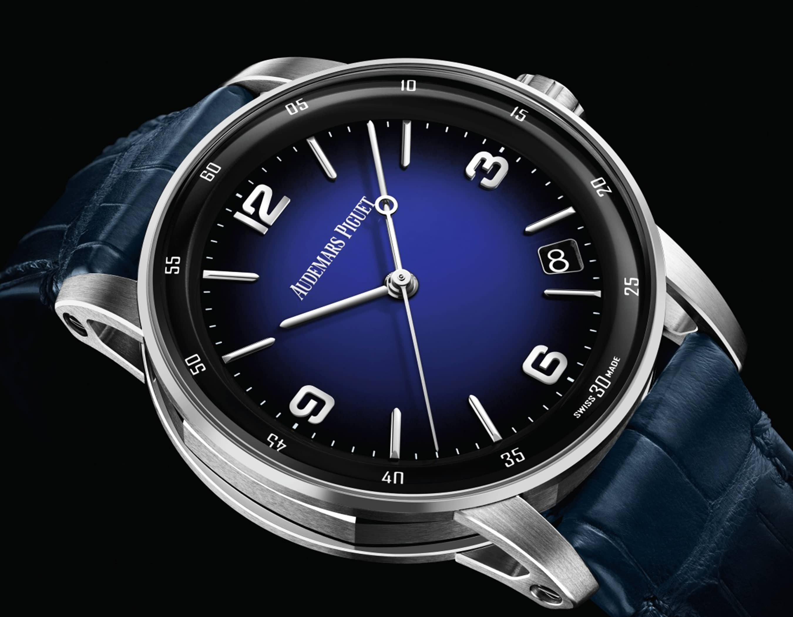 Часы Audemars Piguet Code 11.59 by Audemars Piguet Selfwinding 41 mm представлены в корпусе из белого золота 18к размером 41 х 10.7 мм и водонепроницаемостью 30 м. Внутри корпуса установлен автоматический механизм, Калибр 4302, обладающий запасом хода 70 часов. На синем циферблате отображаются часы, минуты, секунды и дата. Часы комплектуются ремешком из кожи аллигатора с вставкой из белого золота 18к. Серия ограничена - 99 шт.