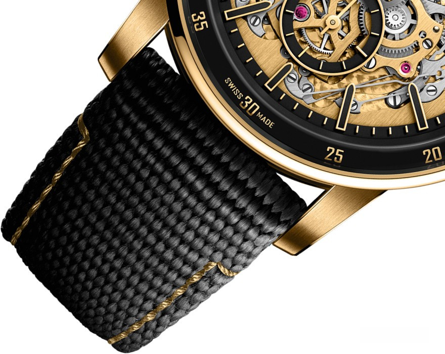 Часы Audemars Piguet Code 11.59 Grande Sonnerie Carillon Supersonnerie с репетиром представлены в корпусе из желтого золота 18к размером 41 мм водонепроницаемостью 20 метров. Внутри корпуса установлен механизм с ручным заводом, Калибр 2956, обладающий запасом хода 48 часов. На золотистом циферблате отображаются часы, минуты. Часы поставляются на текстильном ремешке с золотой застежкой.