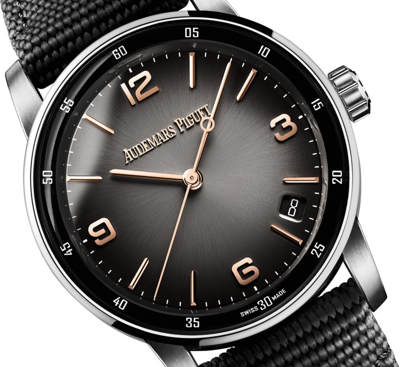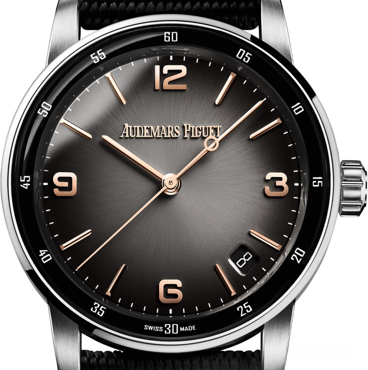 Часы Audemars Piguet Code 11.59 by Audemars Piguet Selfwinding 41 mm представлены в корпусе из белого и розового золота 18к размером 41 х 10.7 мм и водонепроницаемостью 30 м. Внутри корпуса установлен автоматический механизм, Калибр 4302, обладающий запасом хода 70 часов. На сером циферблате отображаются часы, минуты, секунды, дата. Часы комплектуются текстильным ремешком с золотой застежкой.