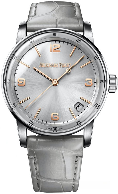 Часы Audemars Piguet Code 11.59 by Audemars Piguet Selfwinding 41 mm представлены в корпусе из белого и розового золота 18к размером 41 х 10.7 мм и водонепроницаемостью 30 м. Внутри корпуса установлен автоматический механизм, Калибр 4302, обладающий запасом хода 70 часов. На серебристом циферблате отображаются часы, минуты, секунды и дата. Часы комплектуются ремешком из кожи аллигатора с вставкой из белого золота 18к.