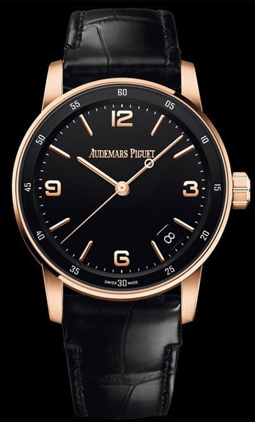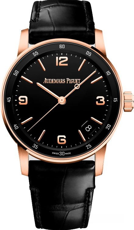 Часы Audemars Piguet Code 11.59 by Audemars Piguet Selfwinding 41 mm представлены в корпусе из розового золота 18к размером 41 х 10.7 мм и водонепроницаемостью 30 м. Внутри корпуса установлен автоматический механизм, Калибр 4302, обладающий запасом хода 70 часов. На черном циферблате отображаются часы, минуты, секунды и дата. Часы комплектуются ремешком из кожи аллигатора с вставкой из розового золота 18к.