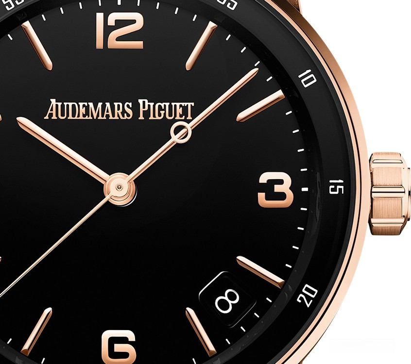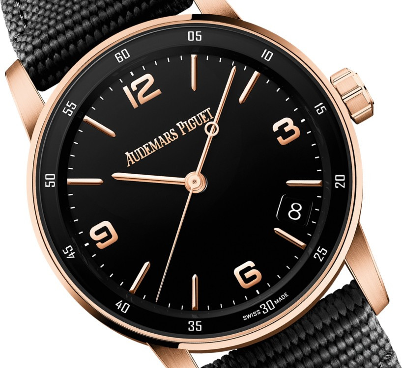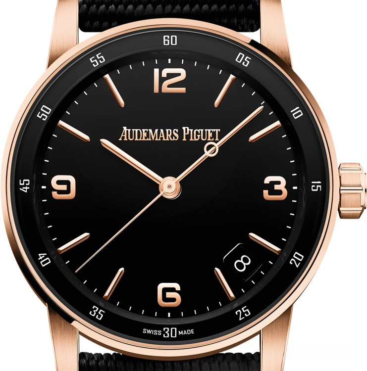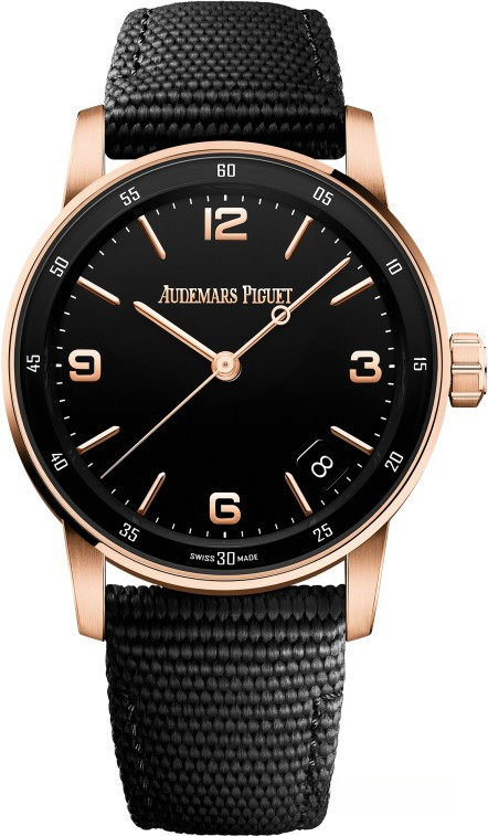 Часы Audemars Piguet Code 11.59 by Audemars Piguet Selfwinding 41 mm представлены в корпусе из розового золота 18к размером 41 х 10.7 мм и водонепроницаемостью 30 м. Внутри корпуса установлен автоматический механизм, Калибр 4302, обладающий запасом хода 70 часов. На черном циферблате отображаются часы, минуты, секунды, дата. Часы комплектуются текстильным ремешком с золотой застежкой.