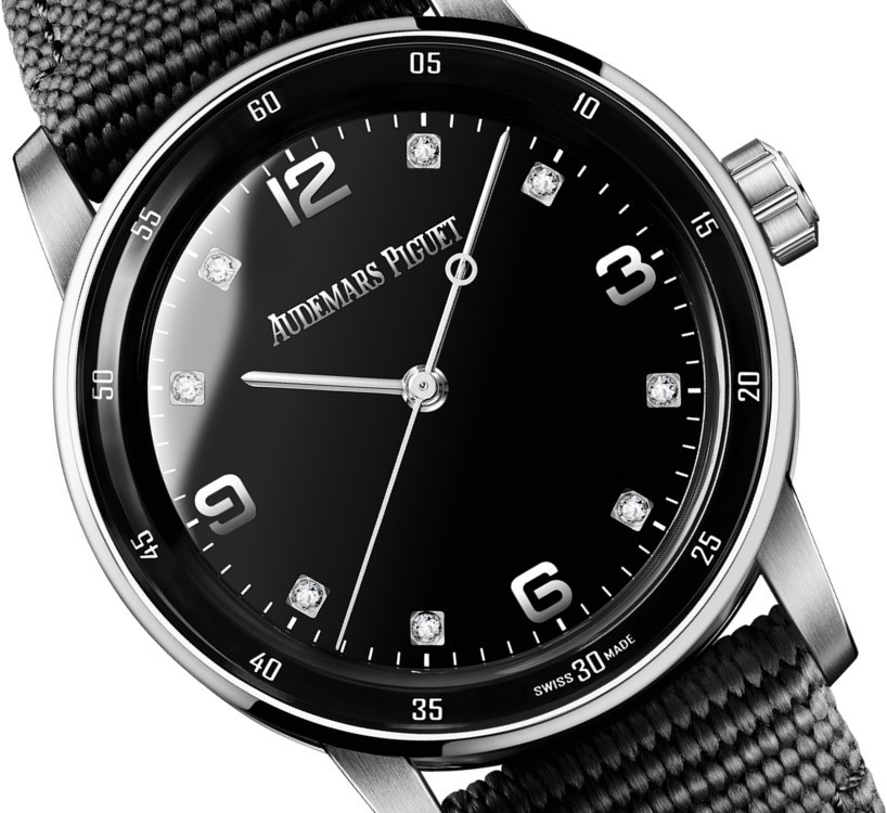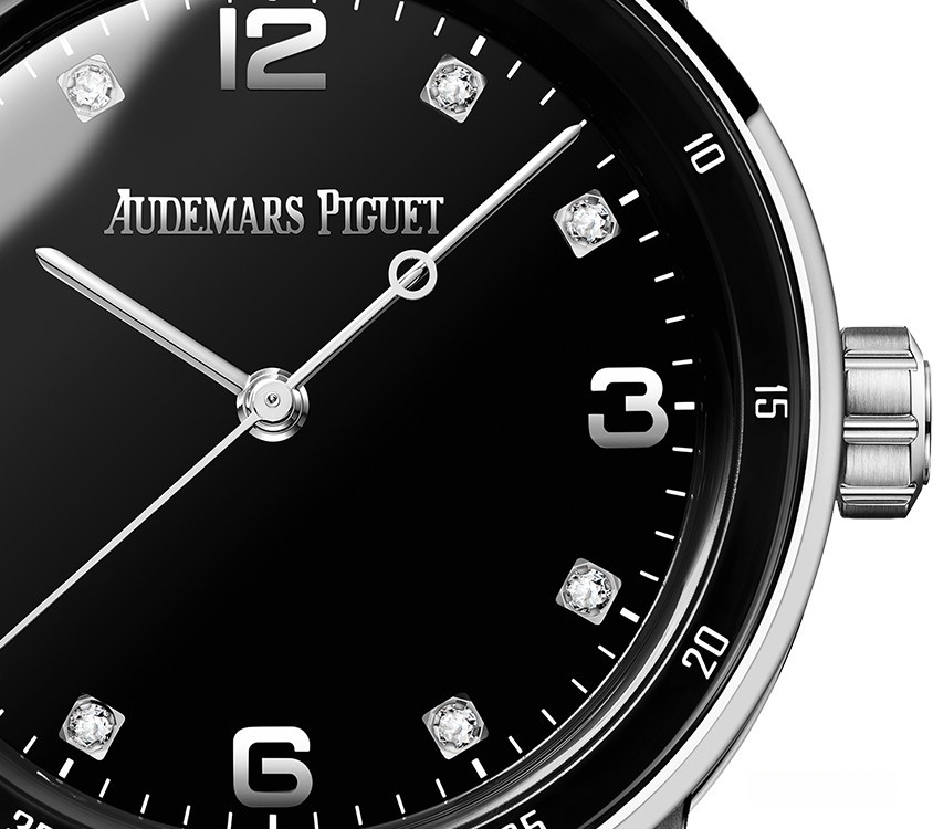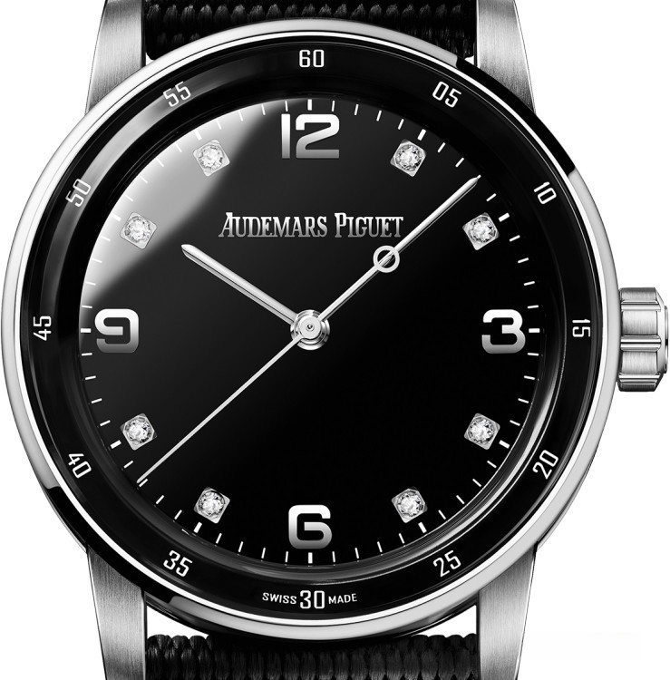 Часы Audemars Piguet Code 11.59 by Audemars Piguet Selfwinding 41 mm представлены в корпусе из белого золота 18к размером 41 х 10.7 мм и водонепроницаемостью 30 м. Внутри корпуса установлен автоматический механизм, Калибр 4309, обладающий запасом хода 70 часов. На черном циферблате с 8-ю белыми бриллиантами отображаются часы, минуты, секунды. Часы комплектуются каучуковы ремешком с золотой застежкой.