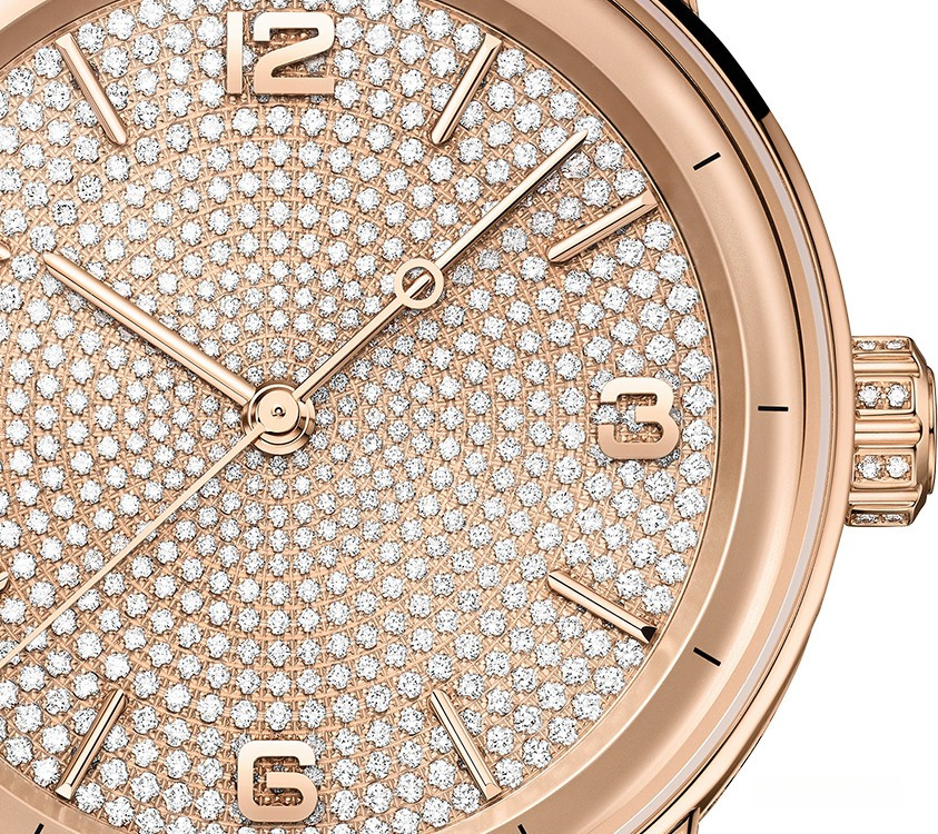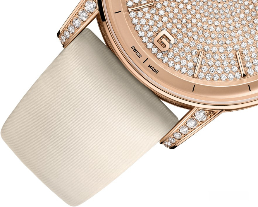 водонепроницаемость 30 м, корпус инкрустирован белыми бриллиантами