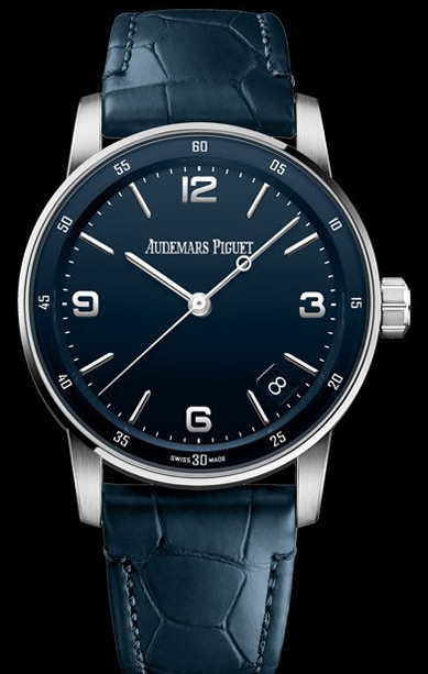 Часы Audemars Piguet Code 11.59 by Audemars Piguet Selfwinding 41 mm представлены в корпусе из белого золота 18к размером 41 х 10.7 мм и водонепроницаемостью 30 м. Внутри корпуса установлен автоматический механизм, Калибр 4302, обладающий запасом хода 70 часов. На синем циферблате отображаются часы, минуты, секунды и дата. Часы комплектуются ремешком из кожи аллигатора с вставкой из белого золота 18к.