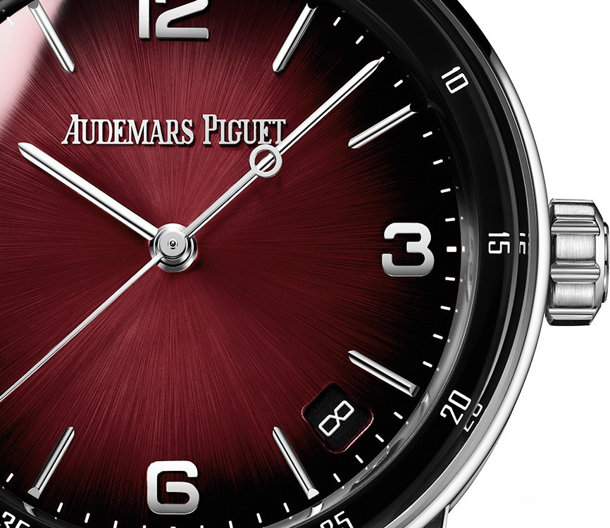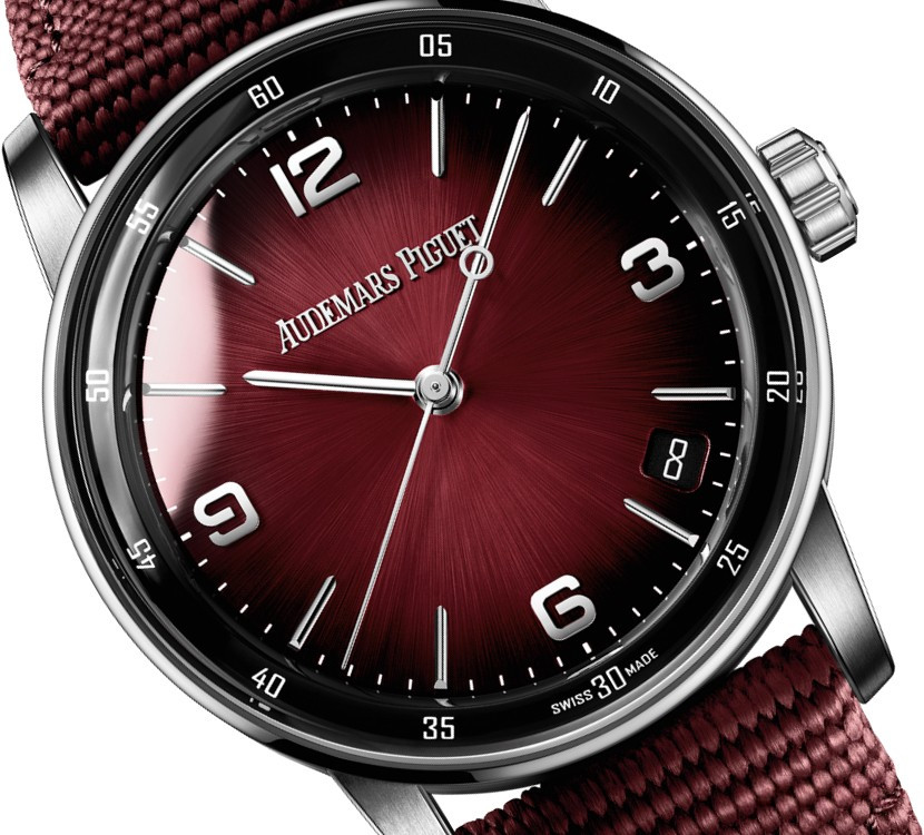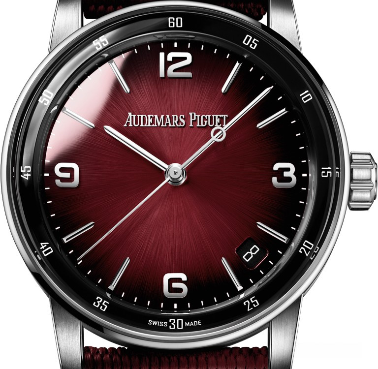 Часы Audemars Piguet Code 11.59 by Audemars Piguet Selfwinding 41 mm представлены в корпусе из белого золота 18к размером 41 х 10.7 мм и водонепроницаемостью 30 м. Внутри корпуса установлен автоматический механизм, Калибр 4302, обладающий запасом хода 70 часов. На бордовом циферблате отображаются часы, минуты, секунды и дата. Часы комплектуются текстильным ремешком с золотой застежкой.