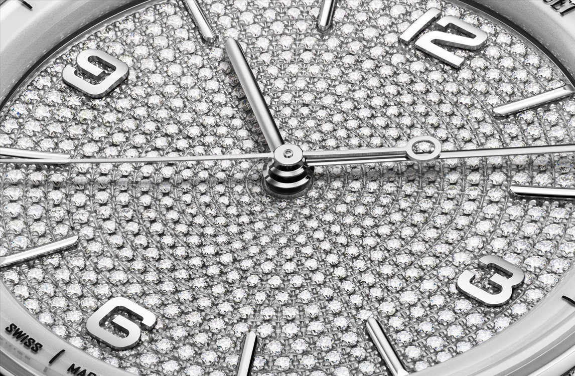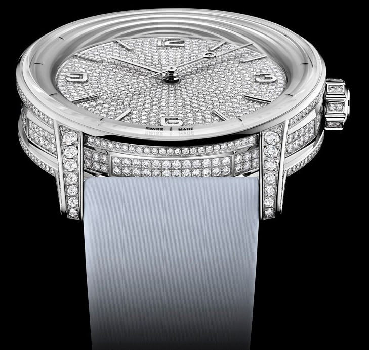 водонепроницаемость 30 м, корпус инкрустирован белыми бриллиантами