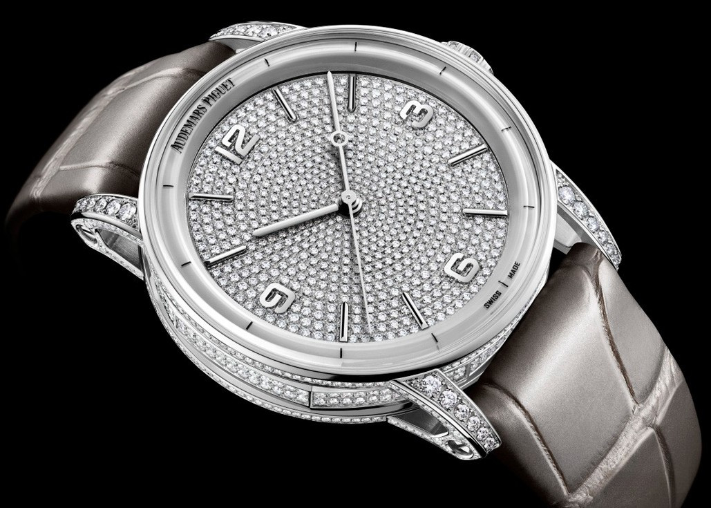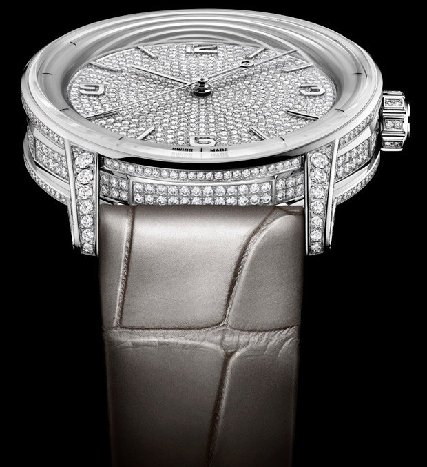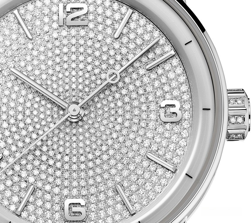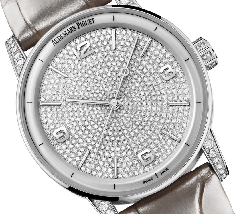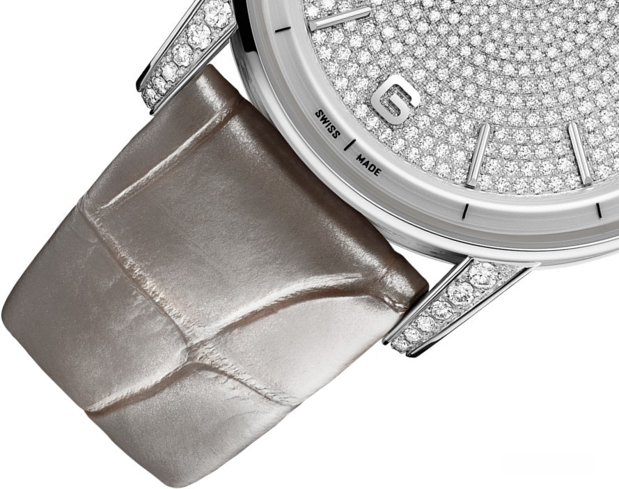 водонепроницаемость 30 м, корпус инкрустирован белыми бриллиантами