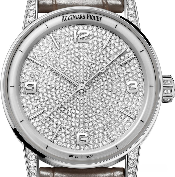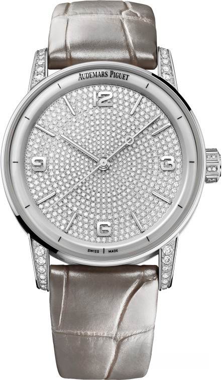 Часы Audemars Piguet Code 11.59 by Audemars Piguet Selfwinding 41 mm представлены в корпусе из белого золота 18к размером 41 х 10.7 мм и водонепроницаемостью 30 м. Внутри корпуса установлен автоматический механизм, Калибр 4309, обладающий запасом хода 70 часов. На циферблате с белыми бриллиантами отображаются часы, минуты, секунды. Часы комплектуются ремешком из кожи аллигатора с золотой застежкой. Корпус инкрустирован белыми бриллиантами.