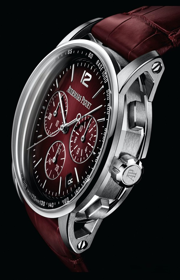 Часы Audemars Piguet Code 11.59 by Audemars Piguet Selfwinding Chronograph 41 mm представлены в корпусе из белого золота 18к размером 41 х 12.6 мм и водонепроницаемостью 30 м. Внутри корпуса установлен автоматический механизм, Калибр 4401, обладающий запасом хода 70 часов. На бордовом циферблате отображаются часы, минуты, секунды, дата, тахиметр. Часы комплектуются ремешком из кожи аллигатора с вставкой из белого золота 18к.
