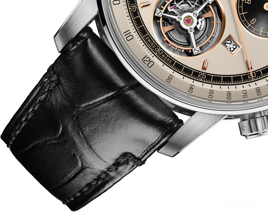 Часы Audemars Piguet Code 11.59 Ultra Complication Universelle представлены в корпусе из белого золота 18к размером 42 х 15.6 мм водонепроницаемостью 20 метров. Внутри корпуса находится автоматический мехнизм, Калибр 1000, обладающий запасом хода 64 часа. На бежевом циферблате отображаются часы, минуты, секунды, дата, месяц, фаза луны, тахиметр, репетир. Часы поставляются с ремешком из кожи аллигатора с золотой застежкой.