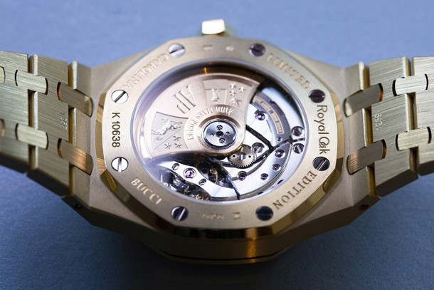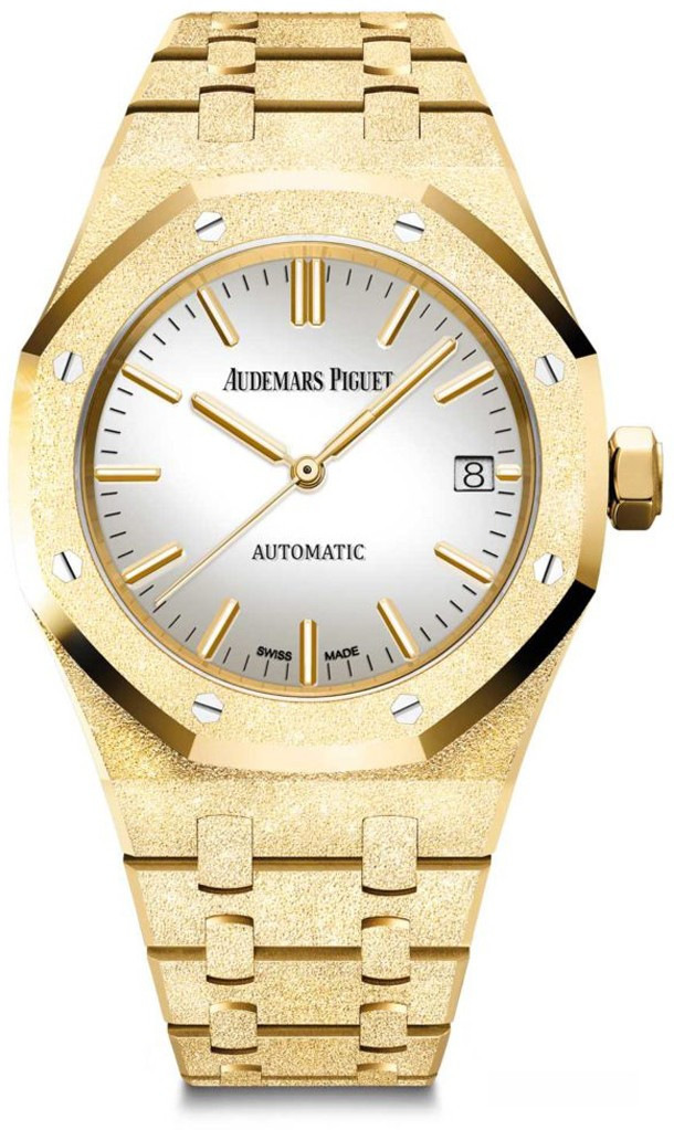 Часы Audemars Piguet Royal Oak Frosted Gold 37mm представлены в корпусе размером 37 х 9.8 мм из желтого золота 18к, сапфировое стекло с обеих сторон, водонепроницаемость 50 метров. Внутри корпуса установлен автоматический механизм, Калибр 3120, с запасом хода 60 часов; функции – часы, минуты, секунды, дата. Браслет интегрированный, из 18-каратного желтого золота. Часы выпущены ограниченной серией 300 штук.
