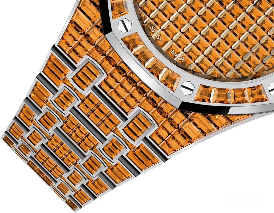 водонепроницаемость 20 м, корпус инкрустирован багетными спессаритами, серия ограничена (1 шт.)