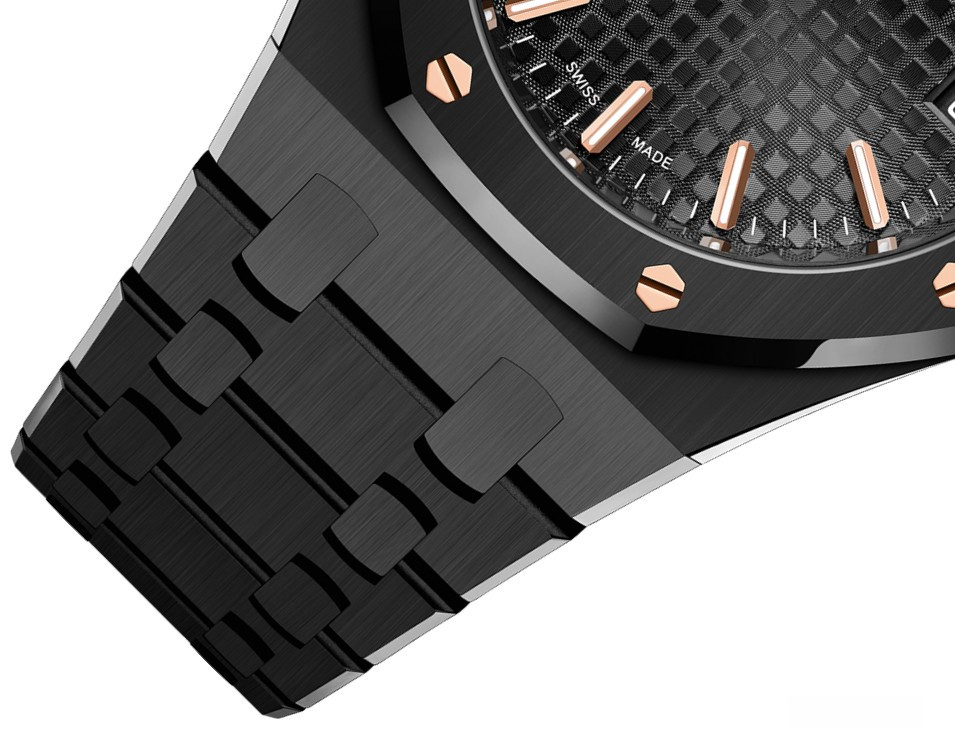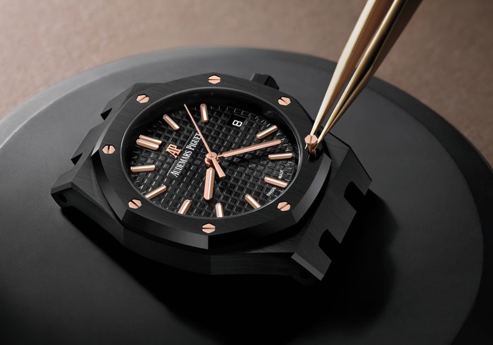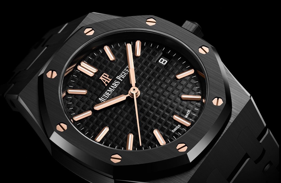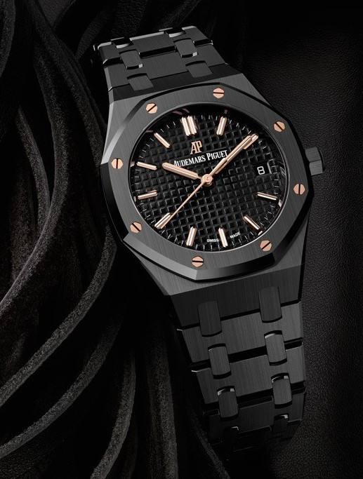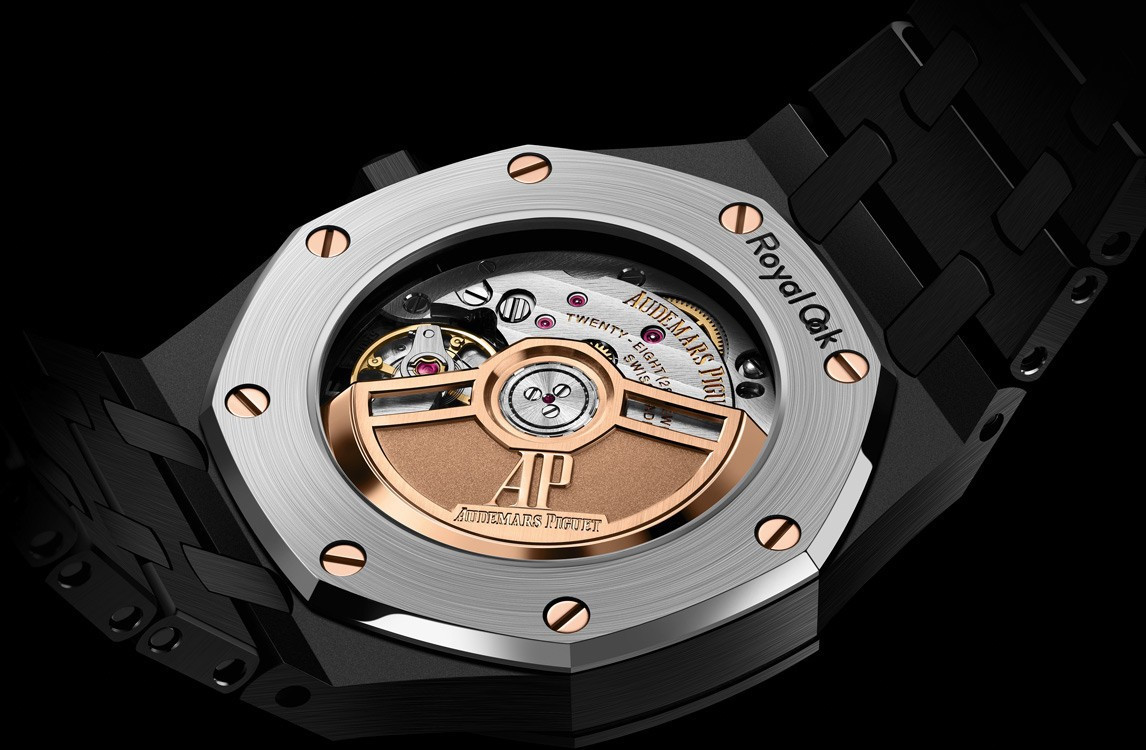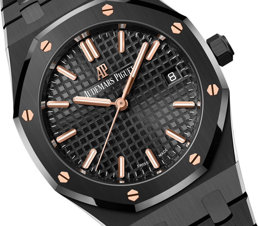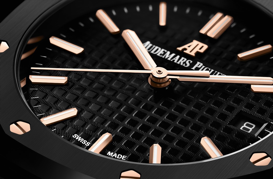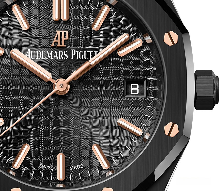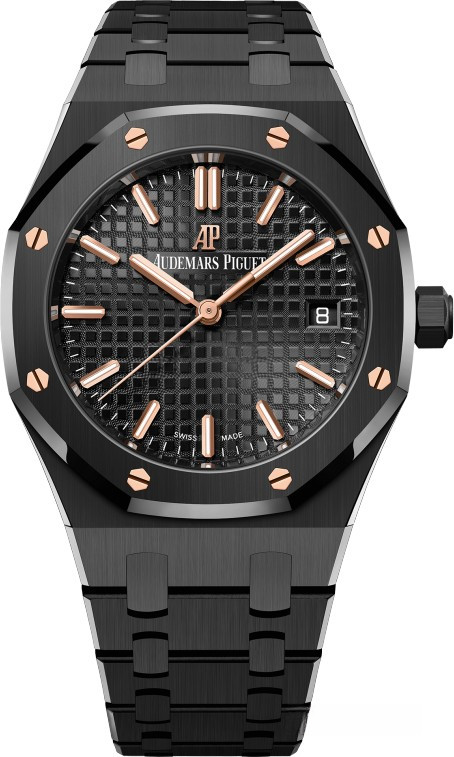 Часы Audemars Piguet Royal Oak Selfwinding 34 mm представлены в корпусе из керамики размером 34 х 8.8 мм водонепроницаемостью 50 метров. Внутри корпуса находится автоматический механизм, Калибр 5800, обладающий запасом хода 50 часов. На черном циферблате отображаются часы, минуты, секунды, дата. Часы поставляются на браслете из керамики.