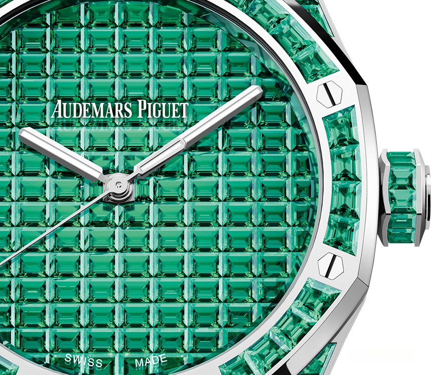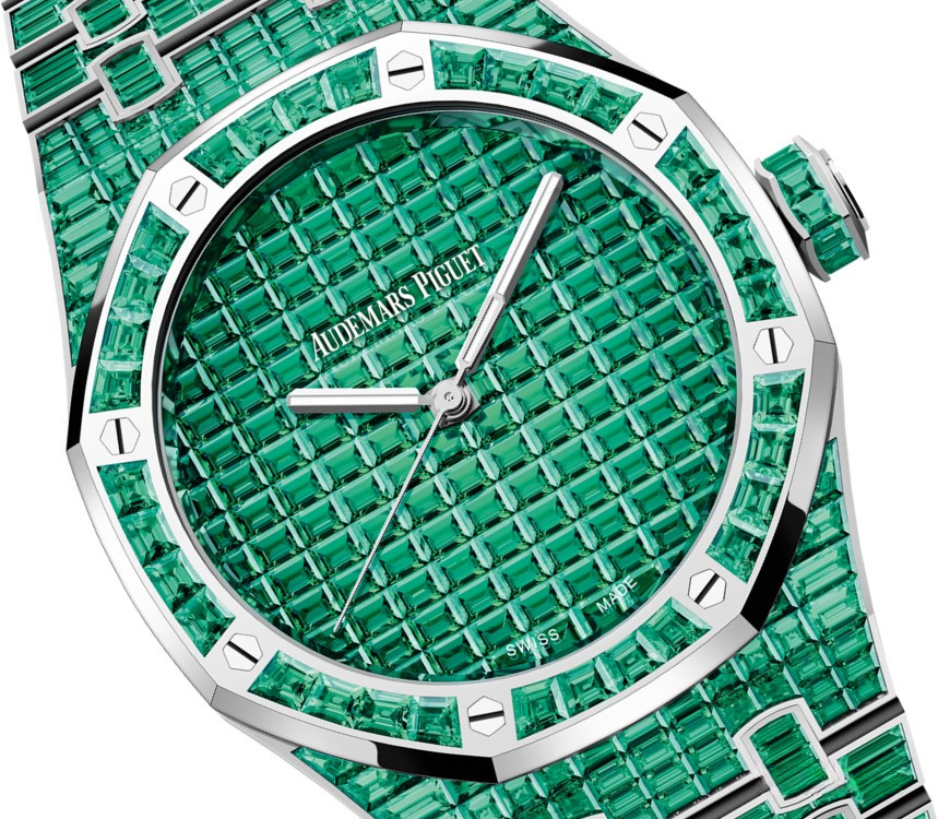 водонепроницаемость 20 м, корпус инкрустирован багетными изумрудами, серия ограничена (1 шт.)