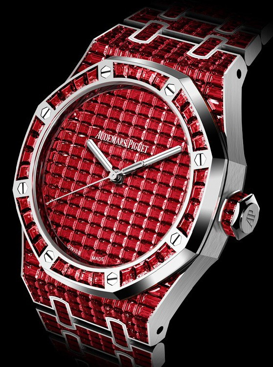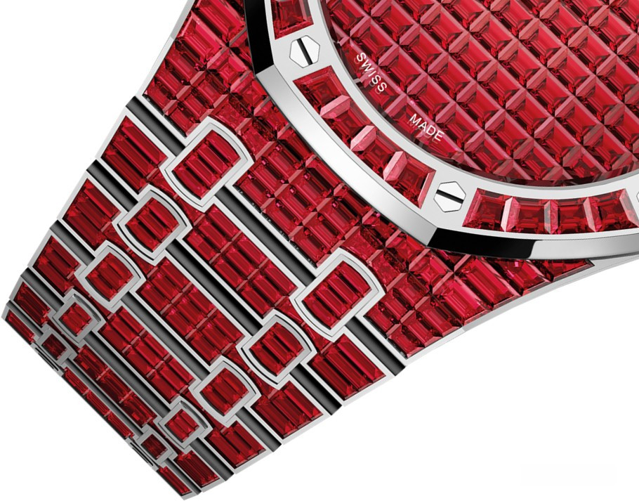водонепроницаемость 20 м, корпус инкрустирован багетными рубинами, серия ограничена (1 шт.)