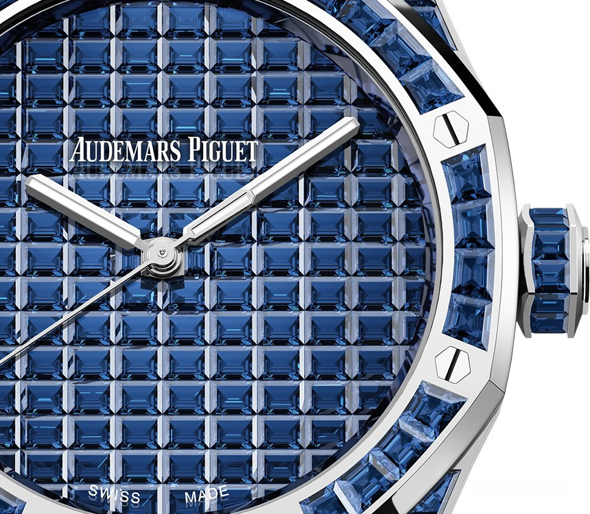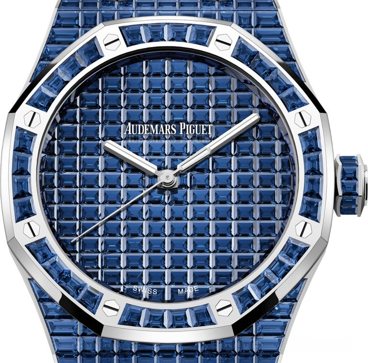 Часы Audemars Piguet Royal Oak Selfwinding 41 mm представлены в корпусе из белого золота 18к размером 41 х 11.6 мм и водонепроницеамостью 20 метров. Внутри корпуса установлен автоматический механизм, Калибр 4309, обладающий запасом хода 70 часов. На циферблате с багетными сапфирами отображаются часы, минуты, секунды. Часы комплектуются браслетом из белого золота 18к, инкрустированном багетными сапфирами. Корпус инкрустирован багетными сапфирами. Серия ограничена - 1 шт.