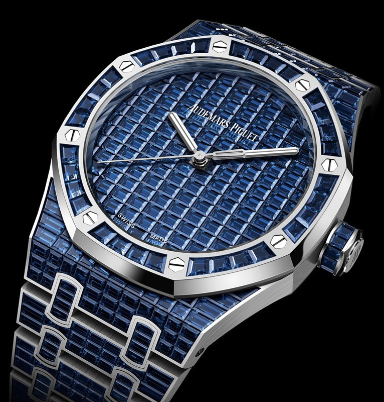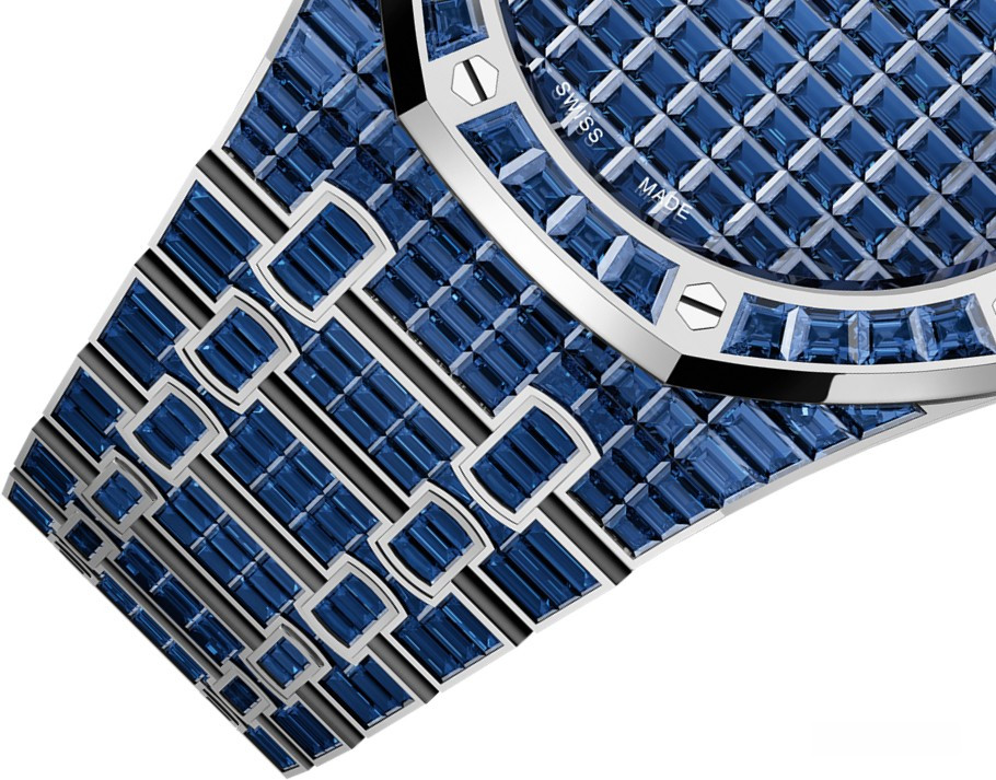водонепроницаемость 20 м, корпус инкрустирован багетными сапфирами, серия ограничена (1 шт.)