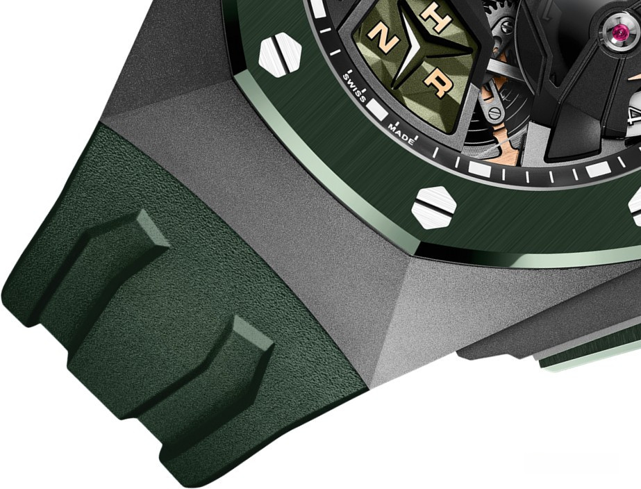 Audemars Piguet Royal Oak Concept Flying Tourbillon GMT представлены в корпусе из титана с керамическим безелем размером 44 х 16.1 мм и водонепроницаемостью до 100 метров. На сером скелетированном циферблате отображаются часы, минуты, 24-часовая индикация времени. Внутри корпуса установлен механизм с ручным заводом, Калибр 2954 с запасом хода 10 дней. Часы с турбийоном и GMT комплектуются каучуковым ремешком с титановой застежкой.