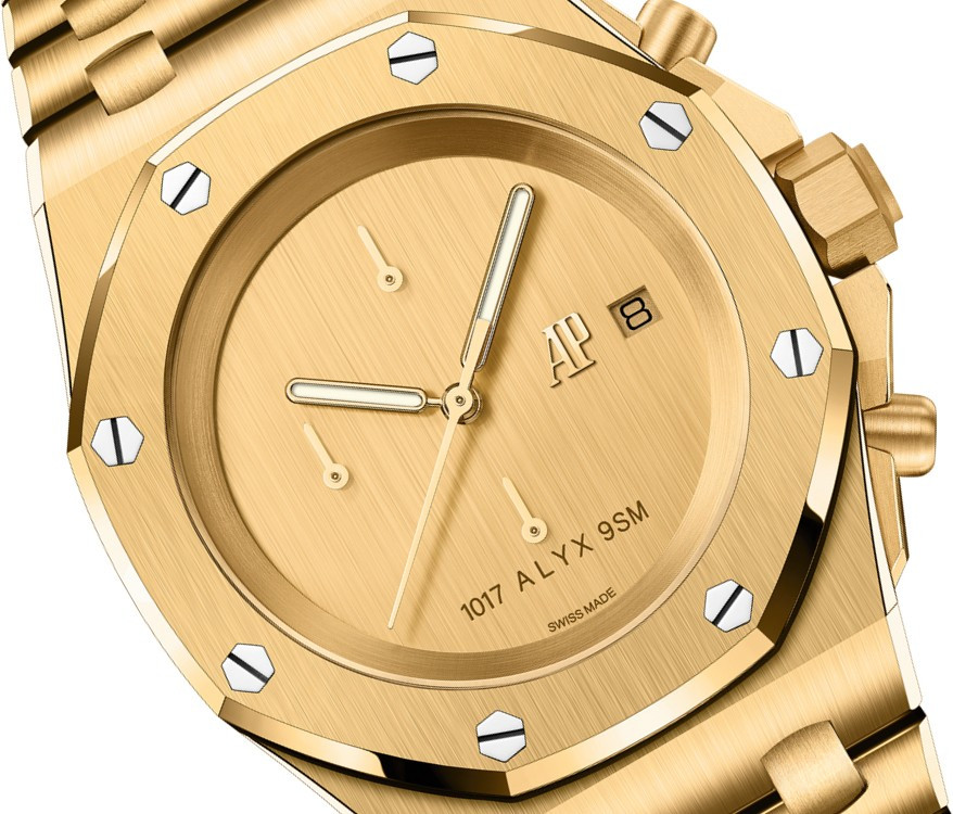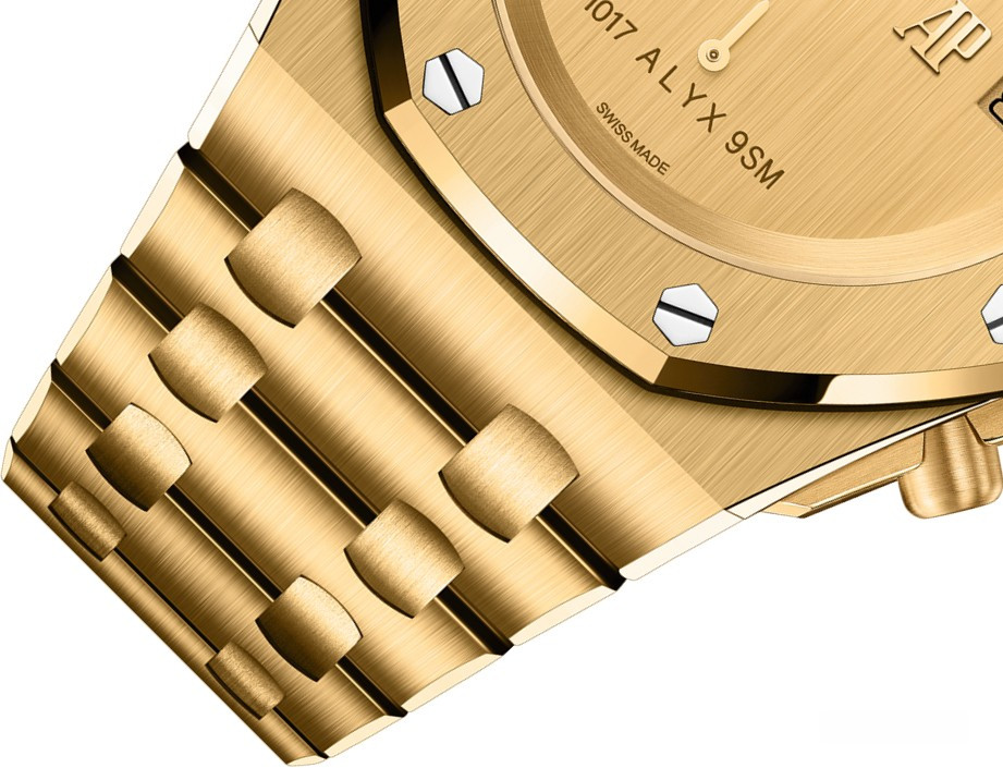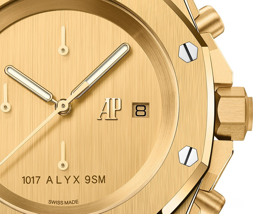 Часы Audemars Piguet Royal Oak Offshore Chronograph 42mm выпущены в корпусе из розового золота 18к размером 42 х 15.3 мм и водонепроницаемостью 100 м. Внутри корпуса установлен автоматический механизм, Калибр 4404, обладающий запасом хода 70 часов. На золотистом циферблате отображаются часы, минуты, секунды, дата, накопители хронографа. Часы комплектуются золотым браслетом. Серия ограничена - 76 шт.