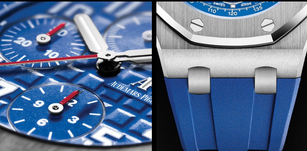 Часы Audemars Piguet Royal Oak Offshore Chronograph 42mm 26470ST.OO.A030CA.01 выпущены в корпусе из нержавеющей стали, размером 42 х 14,6 мм и водонепроницаемостью 100 м. Внутри корпуса установлен автоматический механизм, Калибр АР 3126/3840. На синем 'Mega Tapisserie' циферблате отображаются часы, минуты, секунды, дата, тахиметр. Запас хода 50 часов. Часы комплектуются каучуковым ремешком с вставкой из нержавеющей стали.