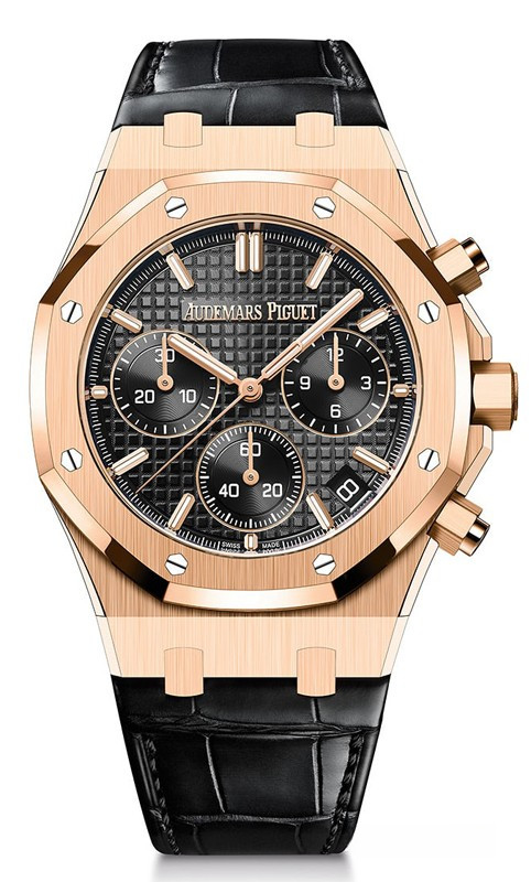 Часы Audemars Piguet Royal Oak Selfwinding Chronograph 41 mm 2022 представлены в корпусе размером 41 х 12.4 мм из розового золота 18к водонепроницаемостью 50 метров. Внутри корпуса установлен автоматический механизм, Калибр AP 4401, обладающий запасом хода 40 часов. На черном гильошированном циферблате отображаются часы, минуты, секунды, дата. Часы поставляются на ремешке из кожи аллигатора с застежкой из розового золота 18к.