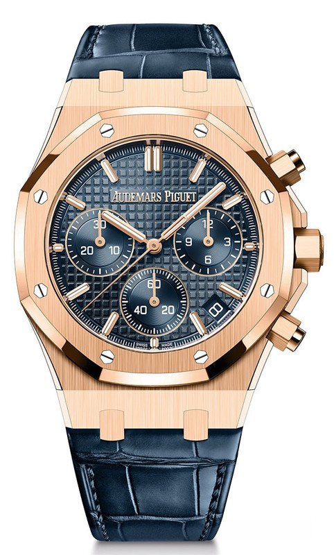 Часы Audemars Piguet Royal Oak Selfwinding Chronograph 41 mm 2022 представлены в корпусе размером 41 х 12.4 мм из розового золота 18к водонепроницаемостью 50 метров. Внутри корпуса установлен автоматический механизм, Калибр AP 4401, обладающий запасом хода 40 часов. На синем гильошированном циферблате отображаются часы, минуты, секунды, дата. Часы поставляются на ремешке из кожи аллигатора с застежкой из розового золота 18к.