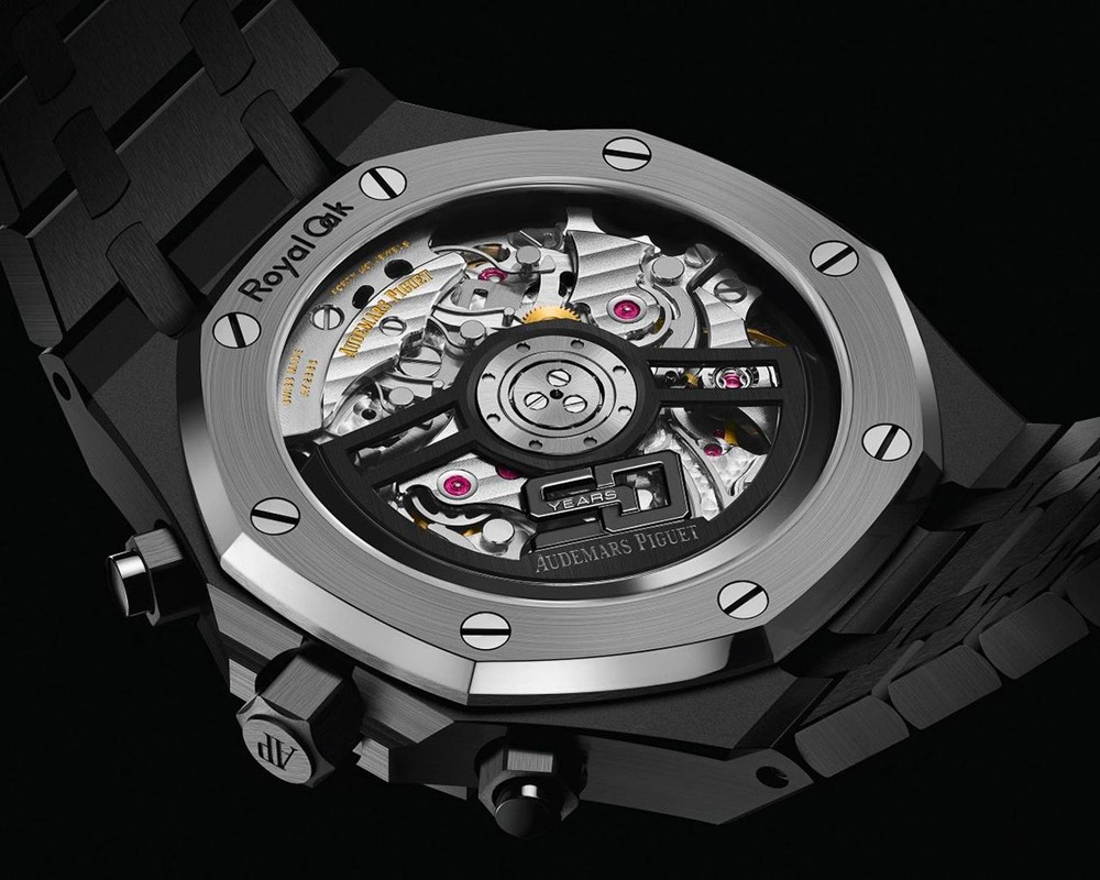 Часы Audemars Piguet Royal Oak Chronograph 50th Anniversary представлены в корпусе из керамики размером 41 x 12.4 мм водонепроницаемостью 50 метров. Внутри корпуса установлен автоматический механизм, Калибр 4401, обладающий запасом хода 70 часов. На черном циферблате отображаются часы, минуты, секунды, дата. Часы поставляются на браслете из керамики.