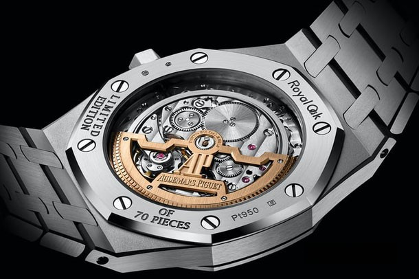 Мануфактура Audemars Piguet выпустила новую версию ультратонкого Royal Oak "Jumbo" в платиновом корпусе на браслете. Особенностью модели стали алмазные индексы. Бриллианты установлены на черный циферблат из оникса. Часы выпущены ограниченной серией 70 штук, сделанных для розничного продавца AP Yoshida в Токио. Часы с бриллиантовыми индексами сегодня встречаются реже, чем в годы до Кварцевого кризиса и последующего возрождения механических часов. Новинка комплектуется классическим ультратонким Калибром 2121 с индикацией часов, минут и даты.