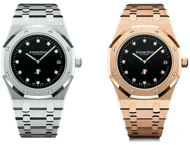 Мануфактура Audemars Piguet выпустила новую версию ультратонкого Royal Oak "Jumbo" в золотом корпусе на браслете. Особенностью модели стали алмазные индексы. Бриллианты установлены на черный циферблат из оникса. Часы выпущены ограниченной серией 70 штук, сделанных для розничного продавца AP Yoshida в Токио. Часы с бриллиантовыми индексами сегодня встречаются реже, чем в годы до Кварцевого кризиса и последующего возрождения механических часов. Новинка комплектуется классическим ультратонким Калибром 2121 с индикацией часов, минут и даты.
