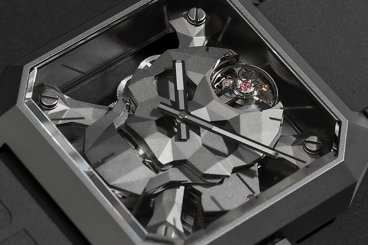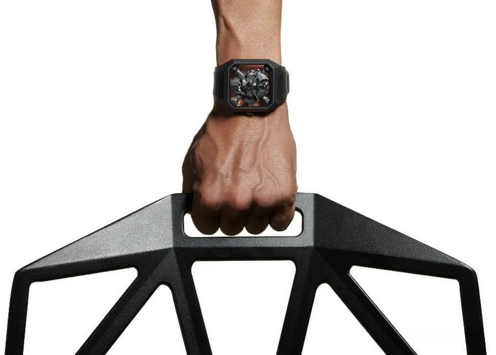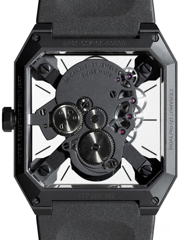 Часы Bell & Ross BR 01 Cyber Skull представлены в корпусе из керамики размером 46.5 мм водонепроницаемостью 50 метров. Внутри корпуса установлен механизм с ручным заводом, Калибр BR-CAL.206, обладающий запасом хода 48 часов. На черном циферблате отображаются часы, минуты, турбийон. Часы поставляются на каучуковом ремешке с титановой вставкой. Серия ограничена - 500 шт.