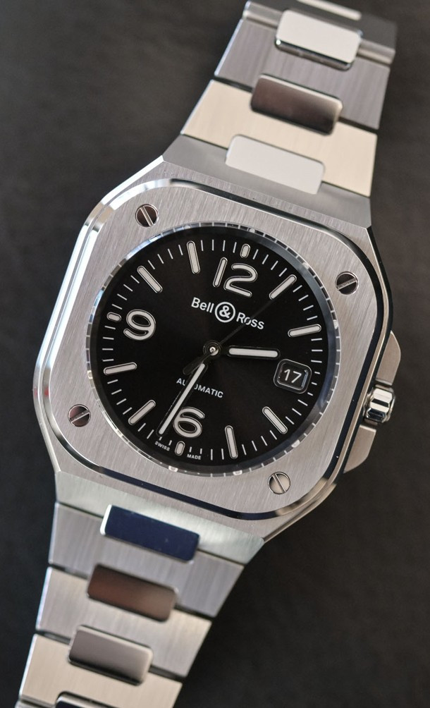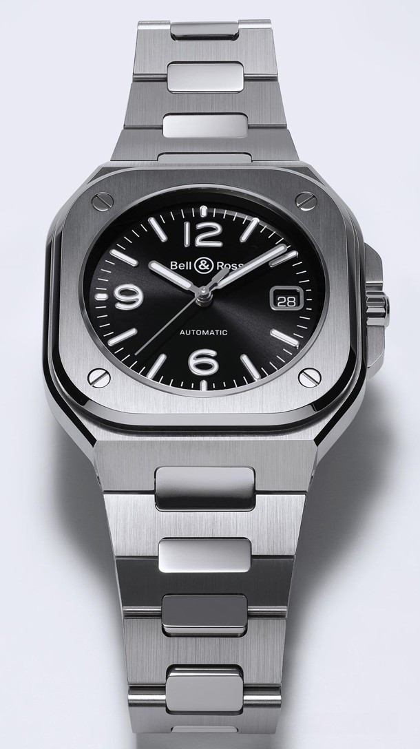 Часы Bell & Ross BR 05 представлены в корпусе из нержавеющей стали размером 40 х 11 мм водонепроницаемостью 100 метров. Внутри корпуса установлен автоматический механизм, Калибр BR-CAL.321, обладающий запасом хода 42 часа. На черном циферблате отображаются часы, минуты, секунды, дата. Часы поставляются на браслете из нержавеющей стали.