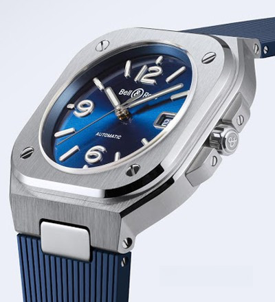 Часы Bell & Ross BR 05 представлены в корпусе из нержавеющей стали размером 40 х 11 мм водонепроницаемостью 100 метров. Внутри корпуса установлен автоматический механизм, Калибр BR-CAL.321, обладающий запасом хода 42 часа. На синем циферблате отображаются часы, минуты, секунды, дата. Часы поставляются на каучуковом ремешке с вставкой из нержавеющей стали.