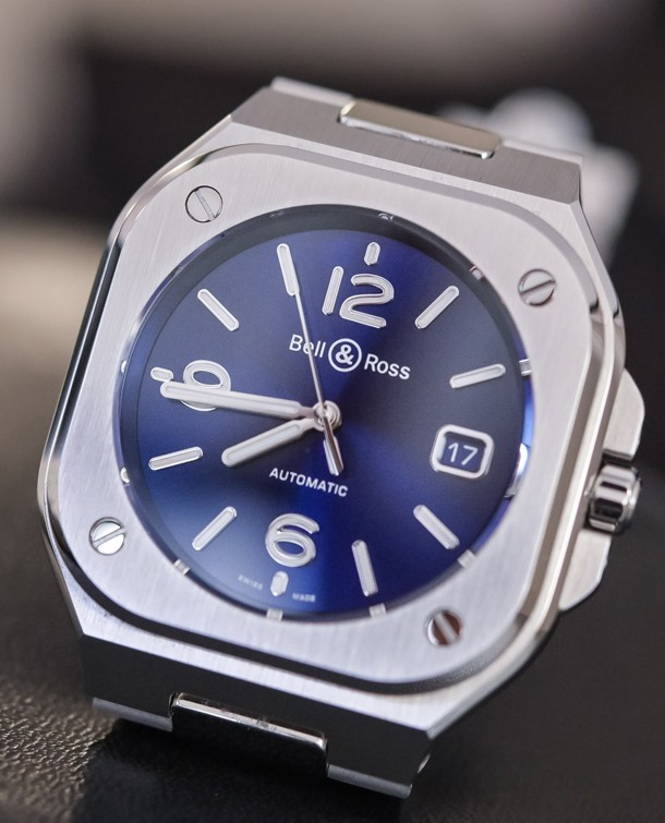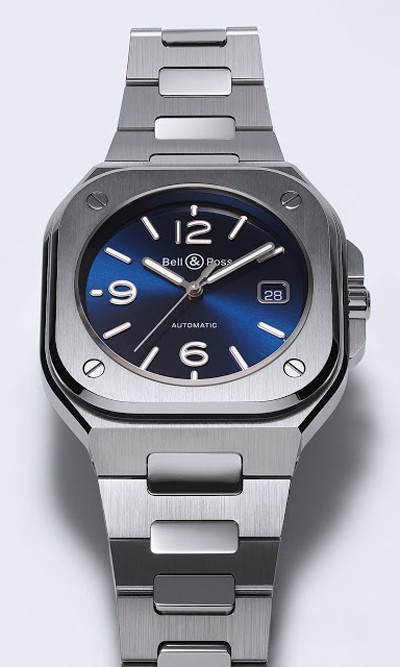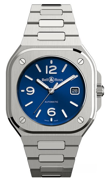 Часы Bell & Ross BR 05 представлены в корпусе из нержавеющей стали размером 40 х 11 мм водонепроницаемостью 100 метров. Внутри корпуса установлен автоматический механизм, Калибр BR-CAL.321, обладающий запасом хода 42 часа. На синем циферблате отображаются часы, минуты, секунды, дата. Часы поставляются на браслете из нержавеющей стали.