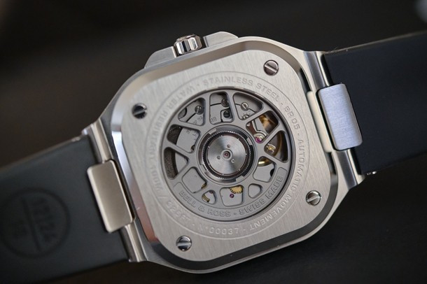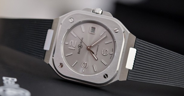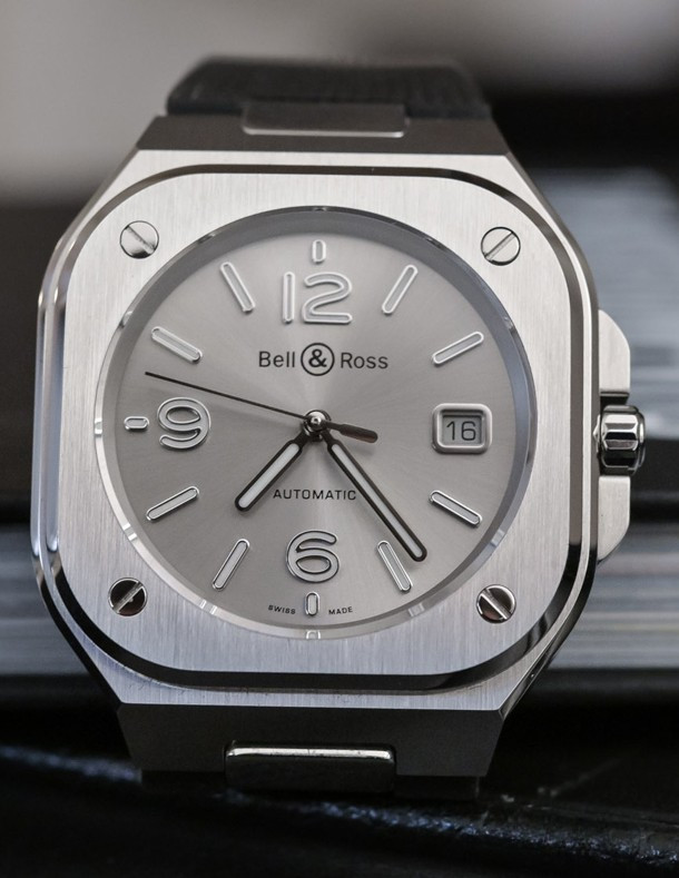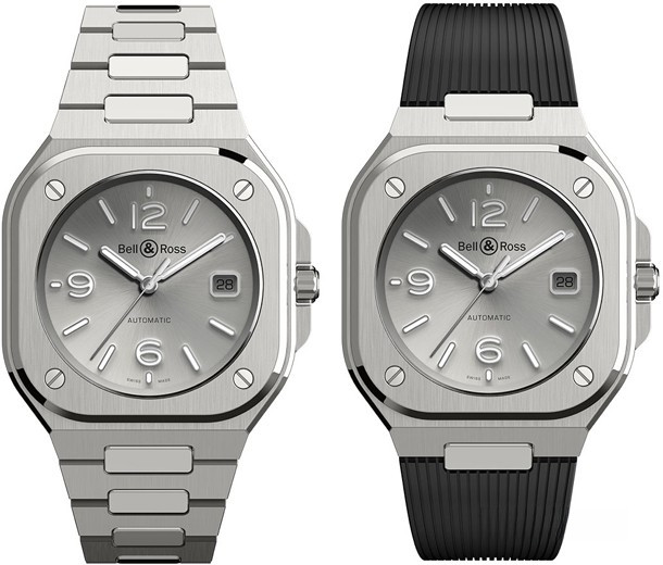 Часы Bell & Ross BR 05 представлены в корпусе из нержавеющей стали размером 40 х 11 мм водонепроницаемостью 100 метров. Внутри корпуса установлен автоматический механизм, Калибр BR-CAL.321, обладающий запасом хода 42 часа. На серебристом циферблате отображаются часы, минуты, секунды, дата. Часы поставляются на каучуковом ремешке с вставкой из нержавеющей стали.