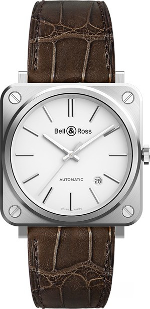 Часы Bell & Ross Instruments BR S-92 Automatic представлены в корпусе из нержавеющей стали диаметром 39 мм и водонепроницаемостью 100 метров. Внутри корпуса установлен автоматический механизм, Калибр BR-CAL.302. На белом циферблате отображаются часы, минуты, секунды, дата. Часы поставляются на ремешке из кожи аллигатора с вставкой из нержавеющей стали.