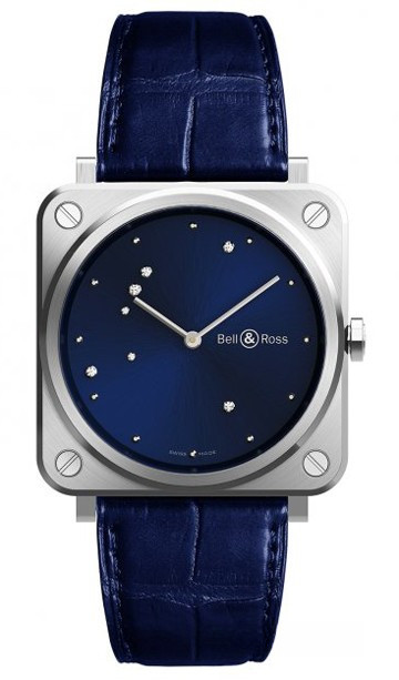 Часы Bell & Ross BR S Diamond Eagle представлены в корпусе диаметром 39 мм из нержавеющей стали с водонепроницаемостью до 100 метров. Внутри корпуса установлен кварцевый механизм, Калибр BR-CAL.102, поддерживающий функции часов и минут. Синий циферблат украшают белые бриллианты, индикация времени осуществляется при помощи центральных стрелок. Часы комплектуются ремешком из кожи аллигатора с вставкой из нержавеющей стали.