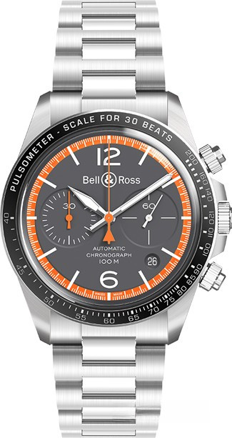 Часы Bell & Ross Vintage BR V2-94 Garde-Cotes представлены в корпусе из нержавеющей стали размером 41 мм и водонепроницаемостью 100 метров. Внутри корпуса установлен автоматический механизм, Калибр BR-CAL.301. На сером циферблате отображаются часы, минуты, секунды, дата, накопители хронографа, пульсомер. Модель комплектуется браслетом из нержавеющей стали.