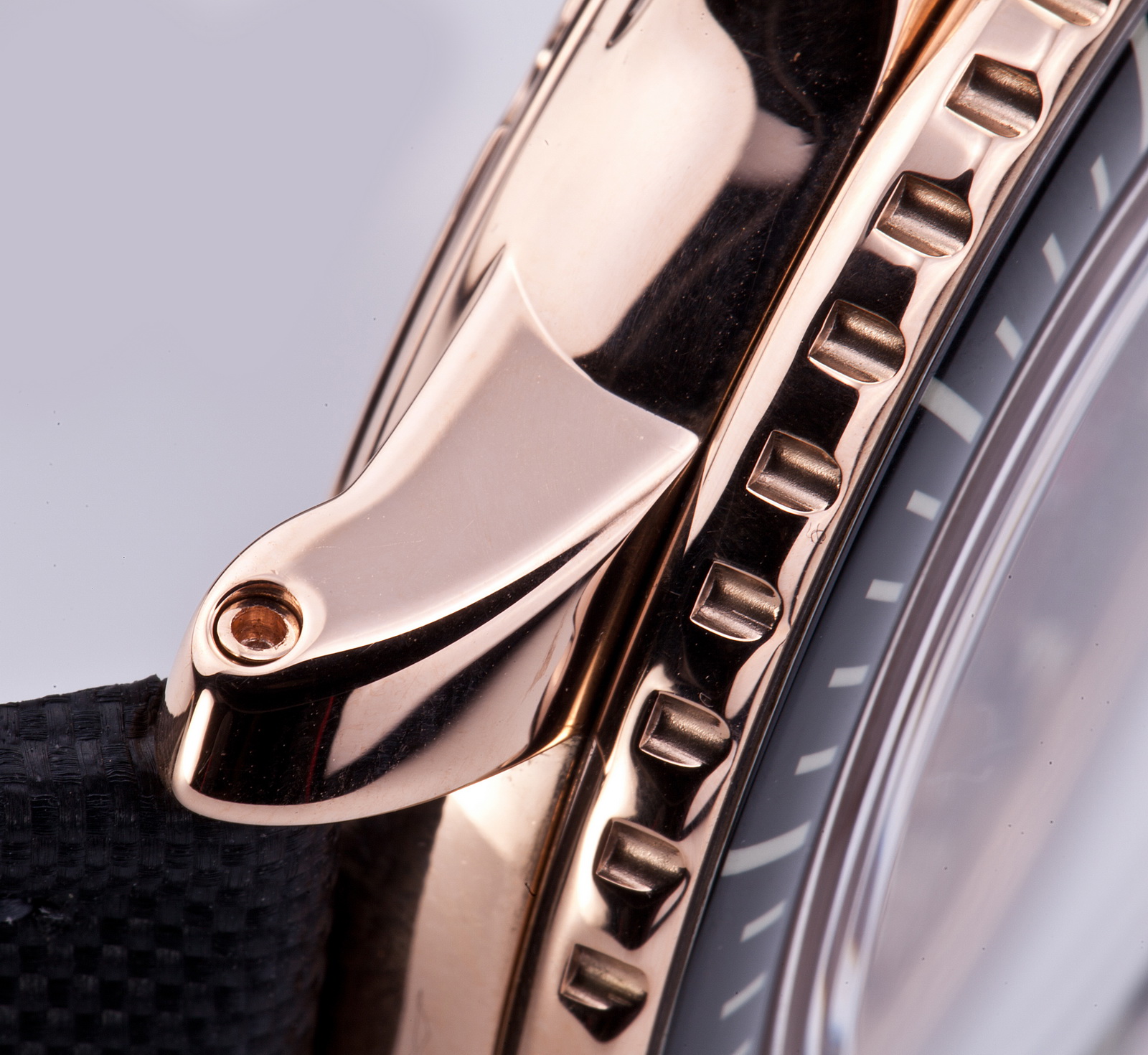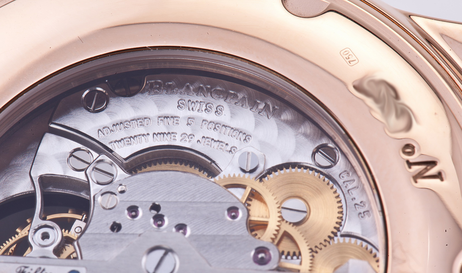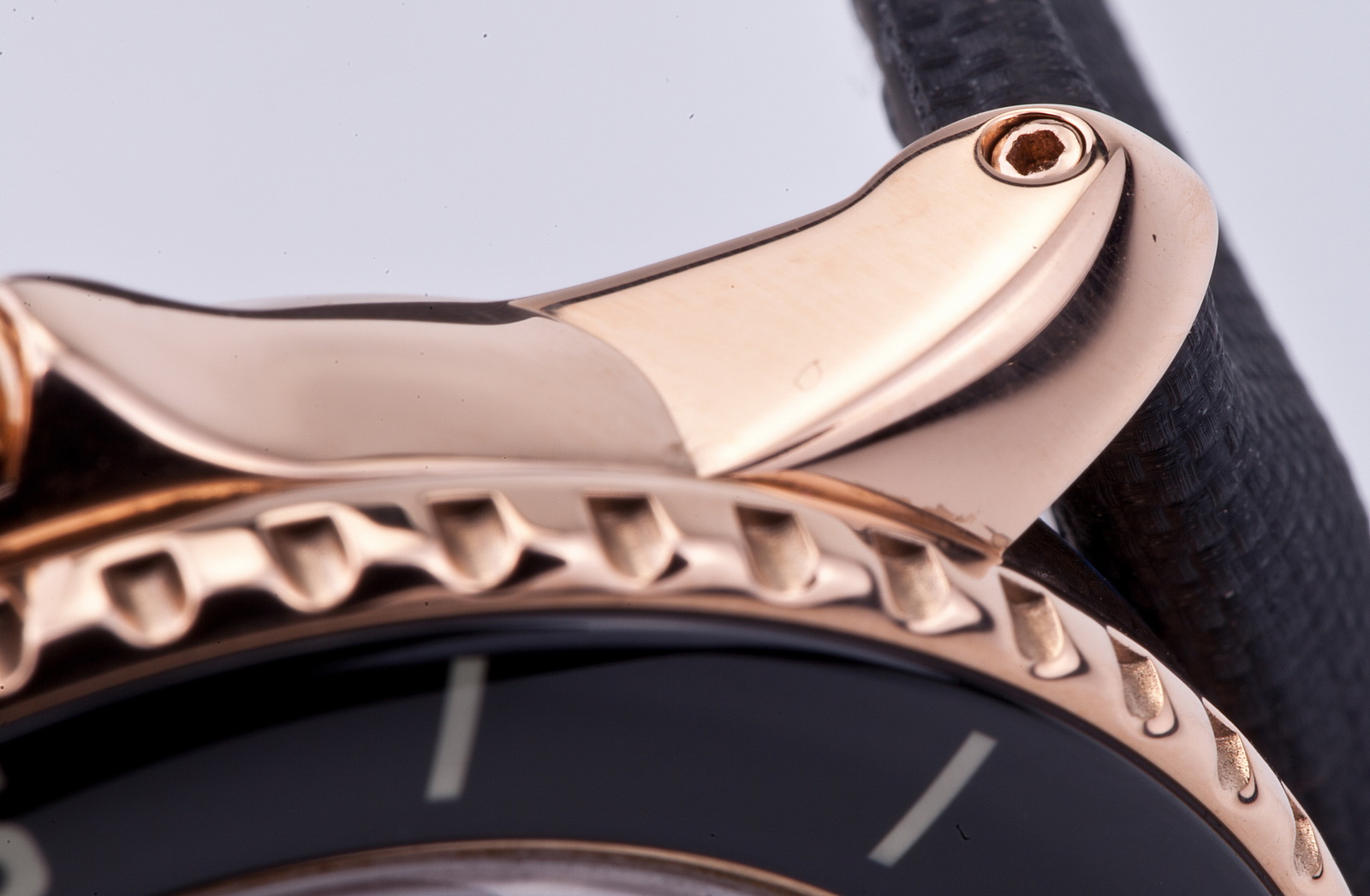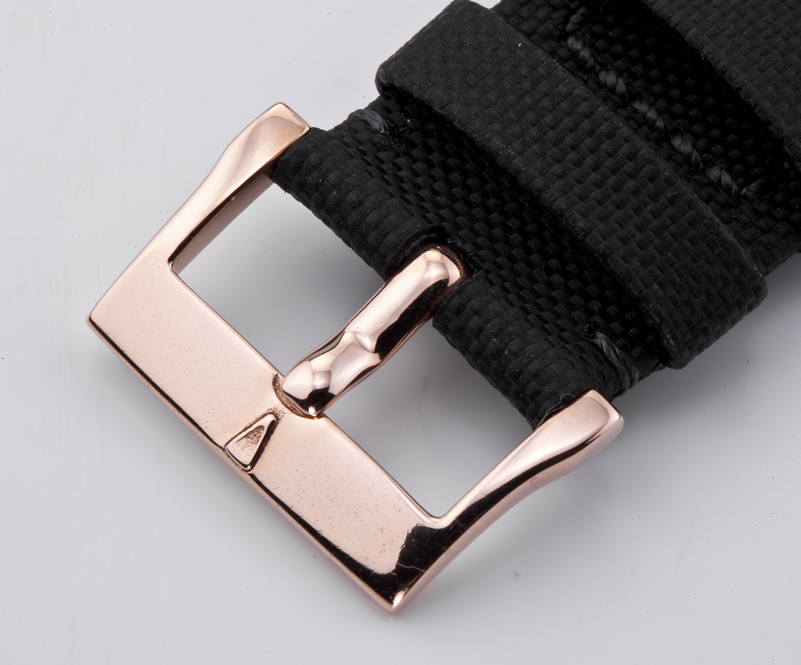 Водостойкие часы Blancpain Fifty Fathoms 'Fifty Fathoms' Tourbillon 5025-3630-52A с турбийоном выпущены в круглом корпусе из розового золота 18к. Размер составляет 45 х 14,75 мм, водонепроницаемость 300 м, корпус с вращающимся безелем. Внутри корпуса установлен автоматический механизм, Калибр Blancpain 25A, обеспечивающий запас хода 7 дней. На черном циферблате отображаются часы, минуты, секунды, запас хода. Часы комплектуются ремешком из кевлара с золотой, 18к вставкой.