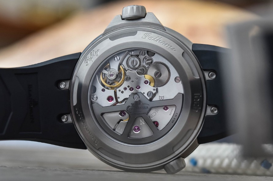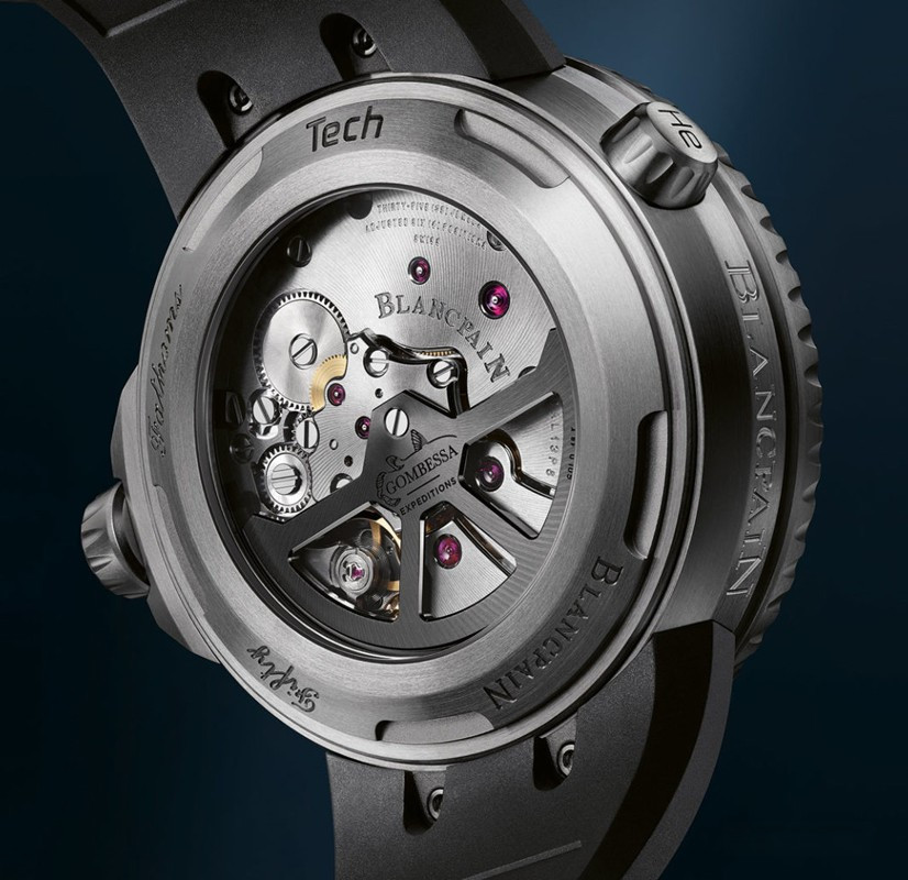 Часы Blancpain Fifty Fathoms Tech Gombessa 70th Anniversary представлены в корпусе размером 47 х 14.81 мм из титана водонепроницаемостью 300 метров. Внутри корпуса установлен автоматический механизм, Калибр 13P8, обладающий запасом хода 5 дней. На черном циферблате отображаются часы, минуты, секунды. Часы поставляются на каучуковом ремешке с титановой застежкой.
