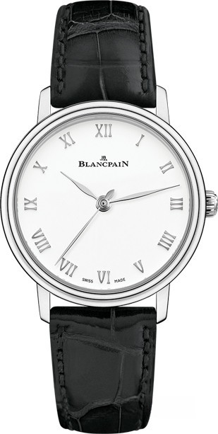 Часы Blancpain Villeret Ultra-Slim Automatic 29mm выпущены в круглом корпусе из нержавеющей стали. Размер составляет 29.2 x 9.24 мм, водонепроницаемость 30 м. Внутри корпуса установлен автоматический механизм, Калибр Blancpain 913, обеспечивающий запас хода 40 часов. На белом циферблате отображаются часы, минуты, секунды. Часы комплектуются черным ремешком из кожи аллигатора с застежкой из нержавеющей стали.