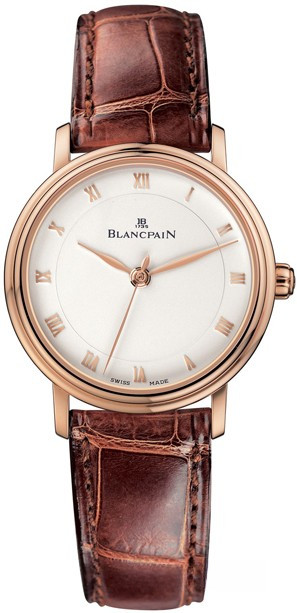 Часы Blancpain Villeret Ultra-Slim Automatic 29mm 6102-3642-55 выпущены в круглом корпусе из розового золота, 18к. Размер составляет 29 х 8,7 мм, водонепроницаемость 30 м. Внутри корпуса установлен автоматический механизм, Калибр Blancpain 953, обеспечивающий запас хода 40 часов. На светло-бежевом циферблате отображаются часы, минуты, секунды. Часы комплектуются ремешком из кожи аллигатора с золотой, 18к вставкой.