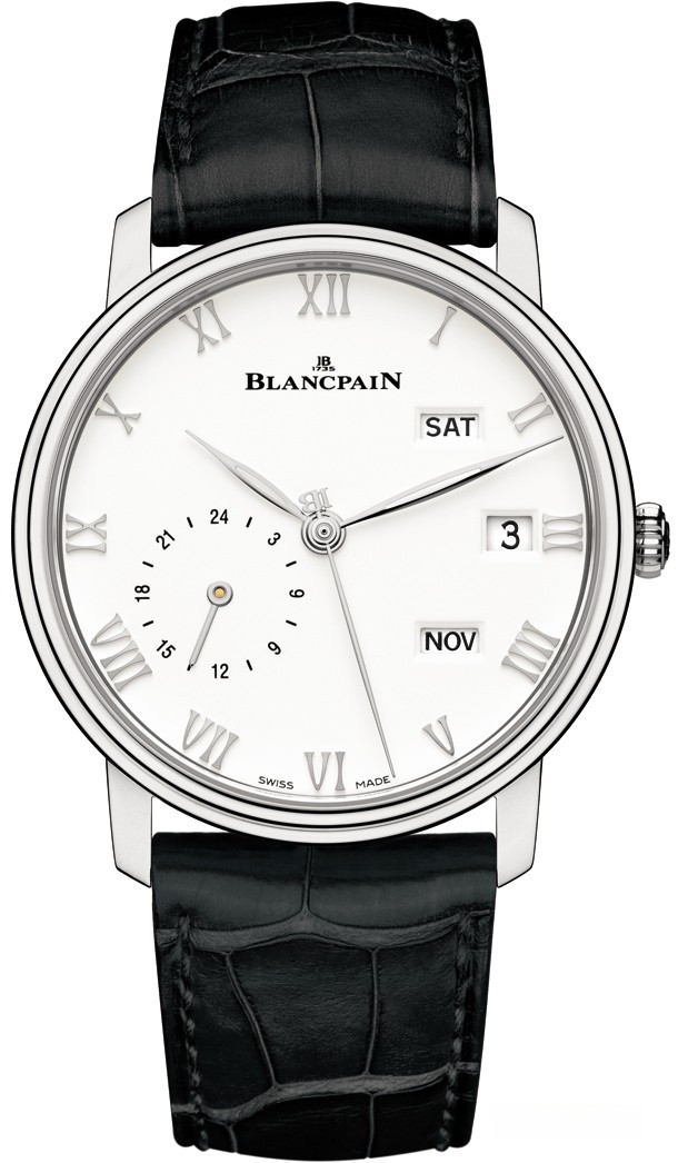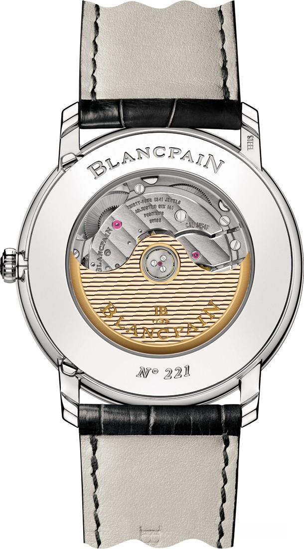 Годовой календарь с GMT в коллекции Villeret впервые появляется в в стальном корпусе, который объединяет белый циферблат и черный кожаный ремешок, чтобы наполнить эту модель уникальным сочетанием современности и классики. Прозрачная сапфировая задняя крышка открывает вращающийся ротор из желтого золота, украшенный гильоше. Стрелки, также как и метки на циферблате, совпадают с материалом корпуса часов. Дизайн циферблата был разработан с тем, чтобы облегчить чтение годового календаря. Таким образом, день, дата и месяц легко последовательно считываются один за другим. GMT (Время Гринвич) – функция, используемая для того, чтобы соотнести время на циферблате со временем в сравниваемом поясе (двойное время). Годовой календарь GMT Villeret снабжен автоматическим калибром 6054F. Этот механизм требует адаптировать дату только раз в год в период между февралем и мартом. Маленький 24-часовой счетчик на цифре 8 циферблата обозначает сопоставимое время. Часы снабжены ремешком из аллигатора с подкладкой из телячьей кожи Alzavel, в то время как тройная застежка гарантирует оптимальный комфорт при использовании.