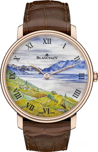 Циферблат синего цвета, выполненный в технике горячей эмали. Корпус изготовлен из 18-каратного розового золота, диаметром 45 мм, дополняет двухступенчатый безель. Сапфировое стекло защищает часы с обеих сторон, а задняя крышка позволяет наблюдать работу часового механизма с ручным подзаводом, Калибр 15В, украшенного Женевскими волнами. В комплекте идет роскошный ремешок коричневого цвета из кожи аллигатора с классической застежкой из розового золота 18к. Часы выпущены в единственном экземпляре.